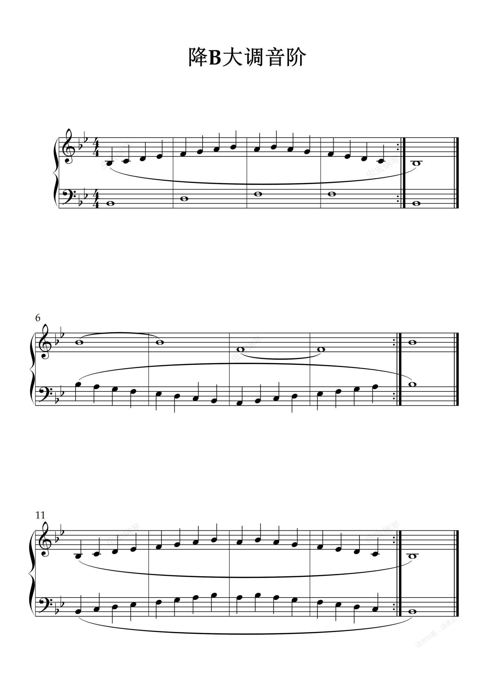 钢琴谱:拜厄 No.99 降B大调音阶