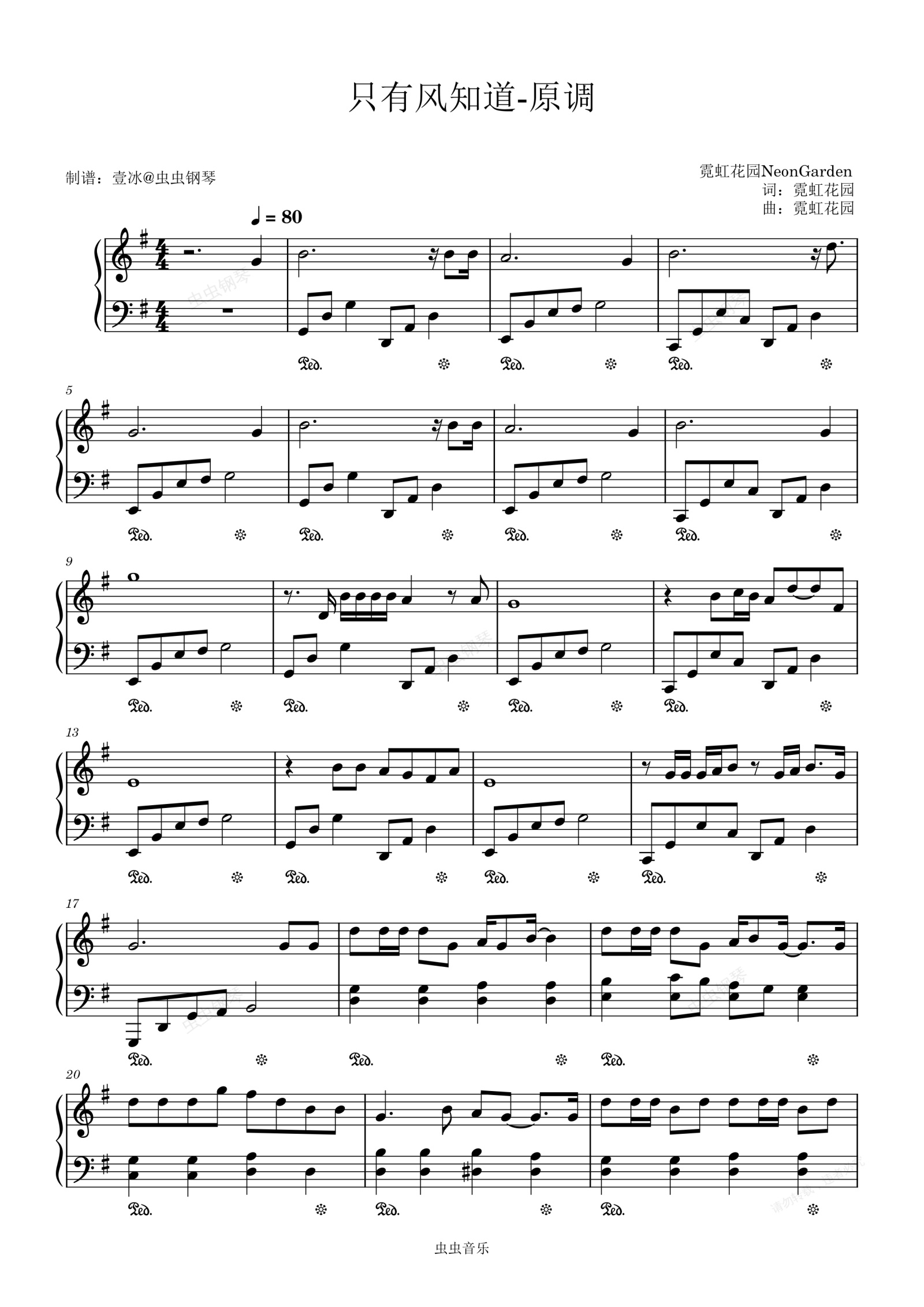 钢琴谱:只有风知道//霓虹花园NeonGarden-原调