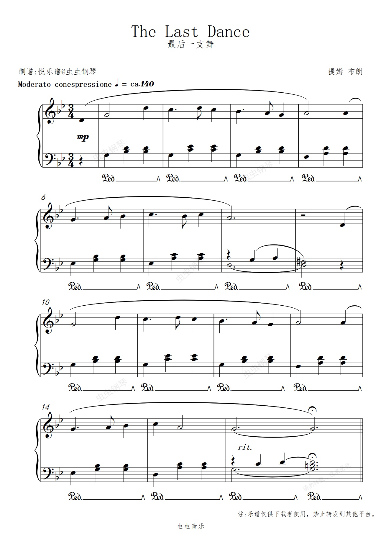 钢琴谱:最后一支舞//The Last Dance【抒情-唯美】