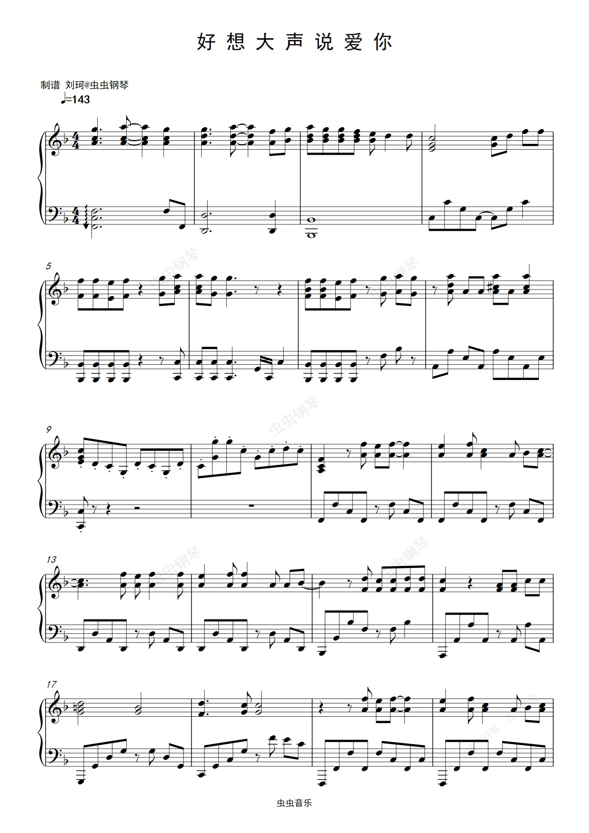 钢琴谱:《好想大声说爱你》 灌篮高手 钢琴独奏