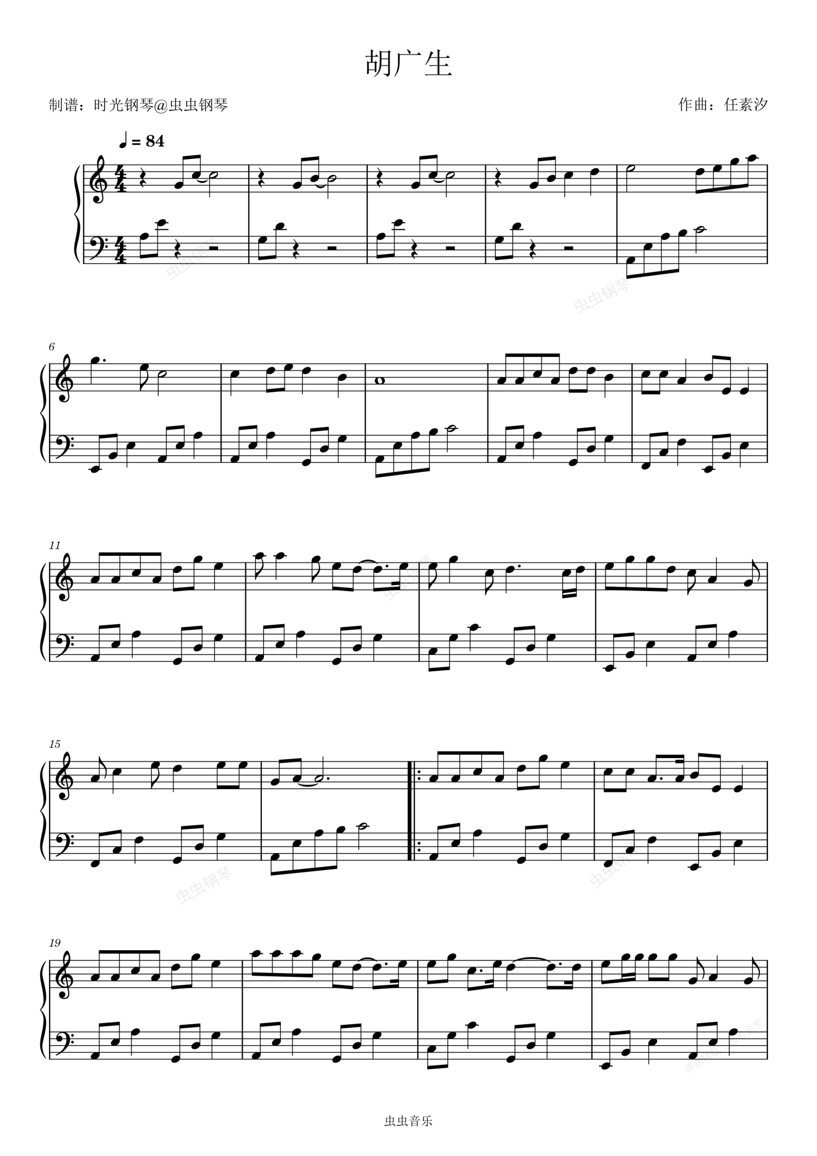 钢琴谱:胡广生 《无名之辈》任素汐 简单好听