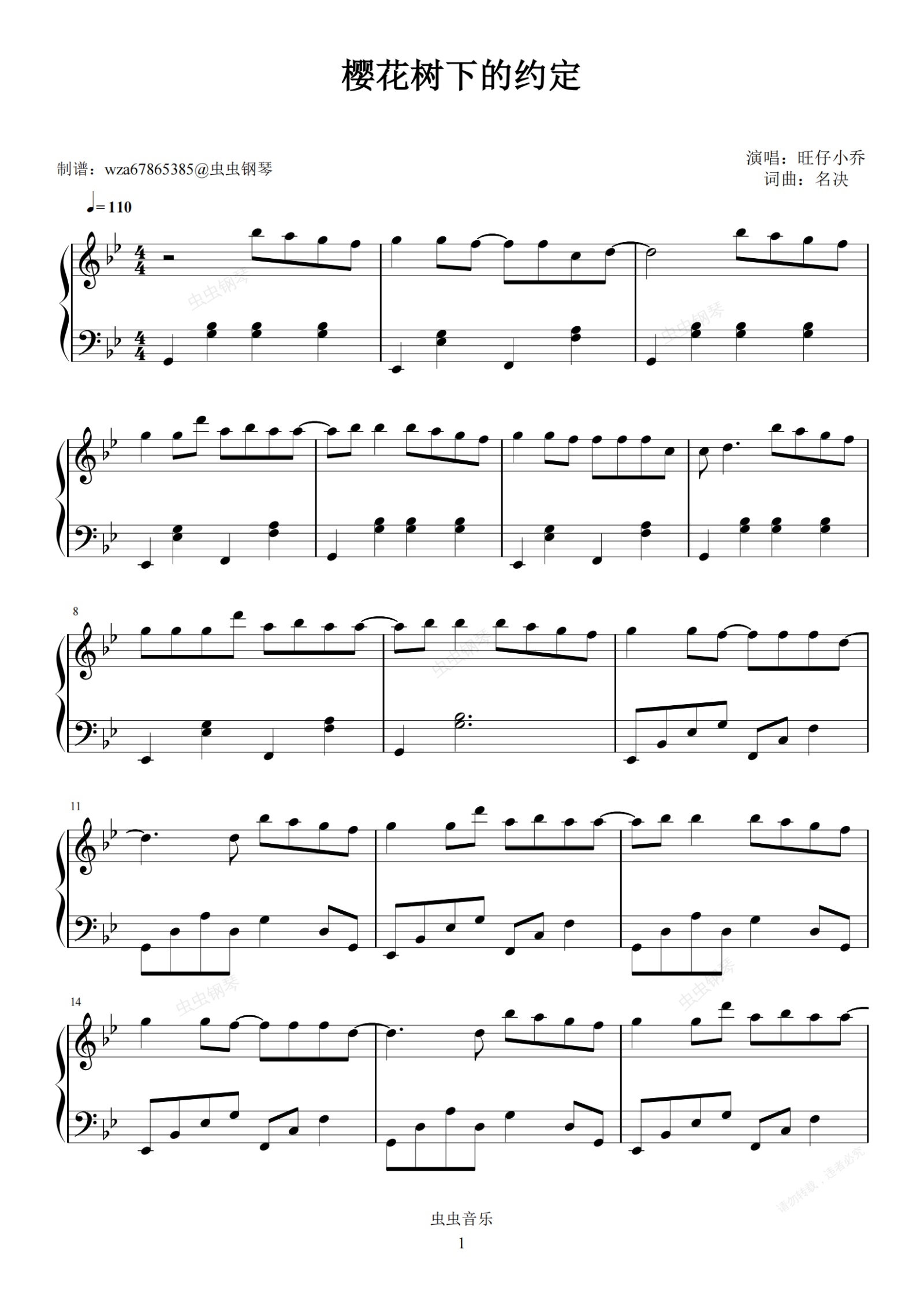 钢琴谱:樱花树下的约定