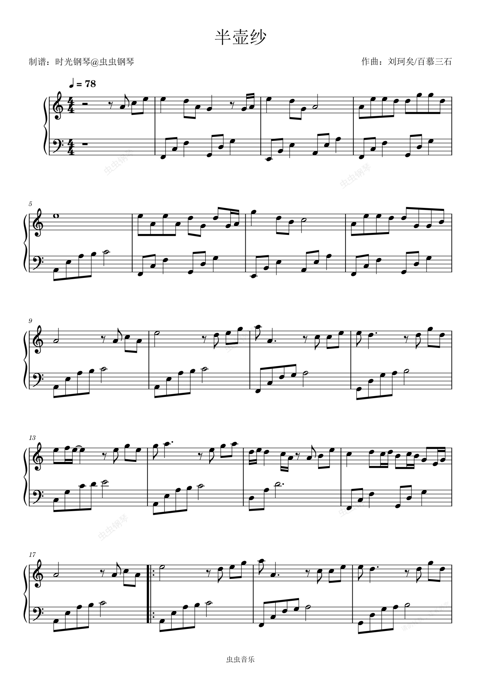 钢琴谱:半壶纱 刘珂矣 简单好听