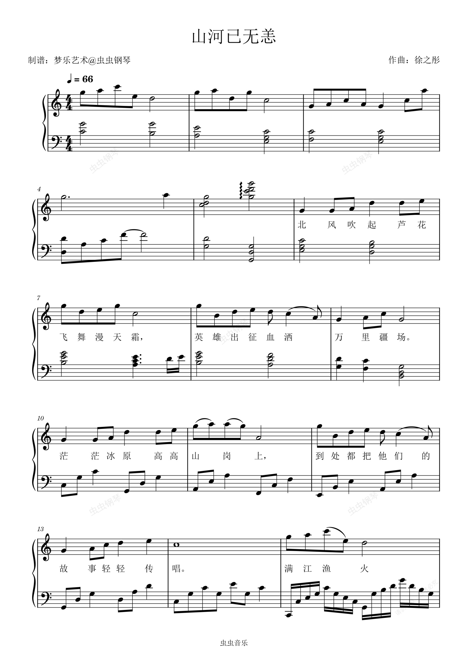 钢琴谱:山河已无恙(附歌词)C调易弹