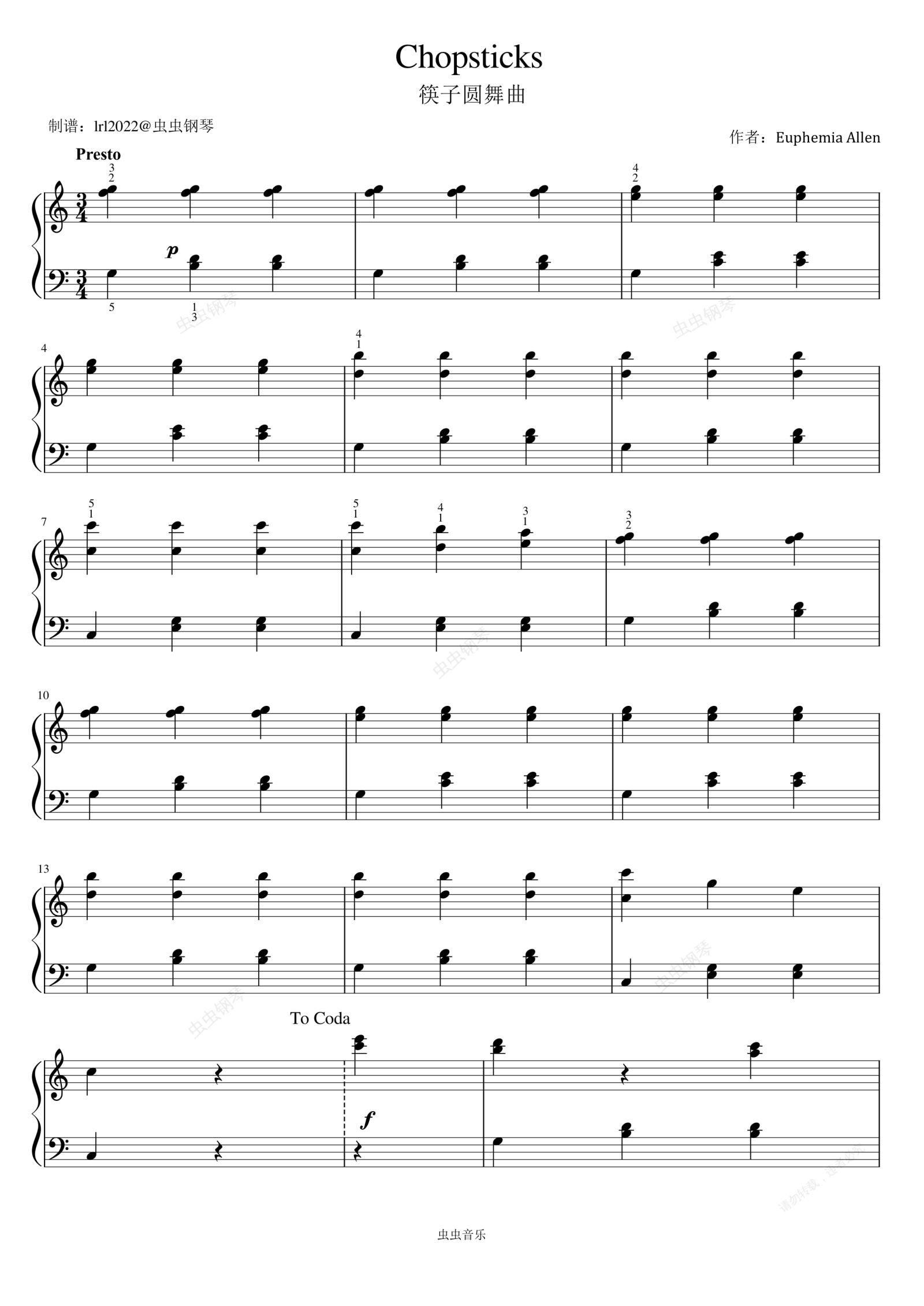 钢琴谱:Chopsticks - 筷子圆舞曲 - Arthur de Lulli 1877 - 钢琴独奏