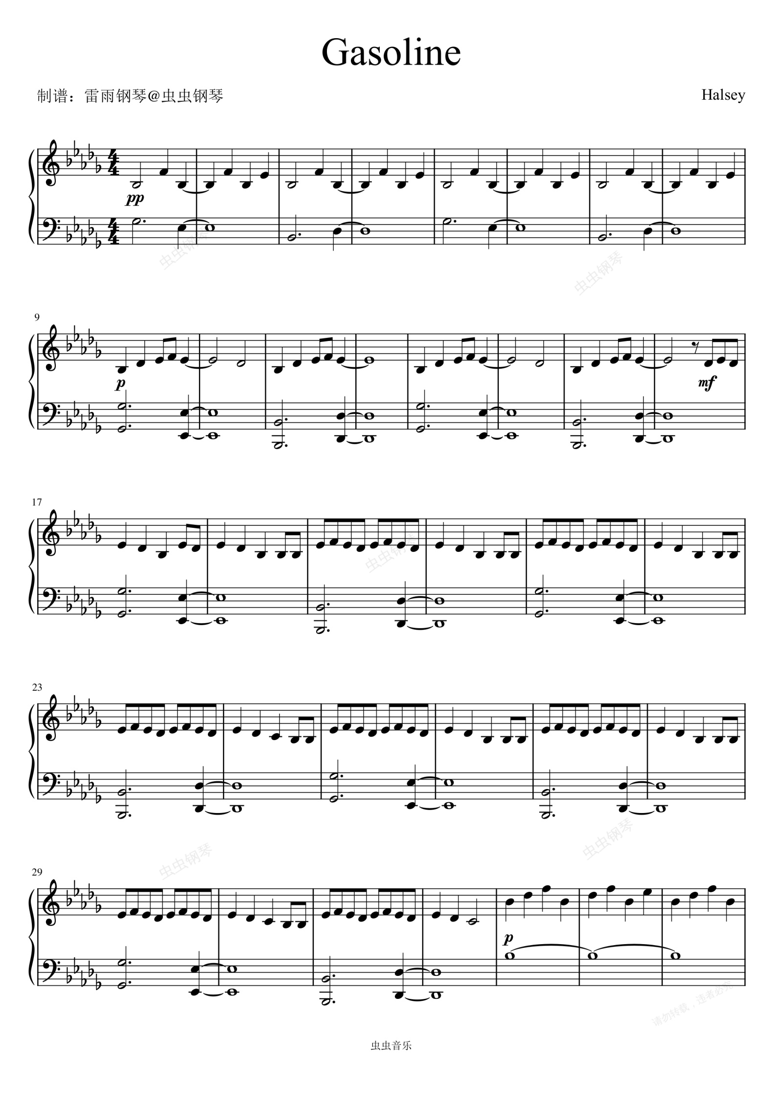 钢琴谱:Gasoline (Explicit) - Halsey
