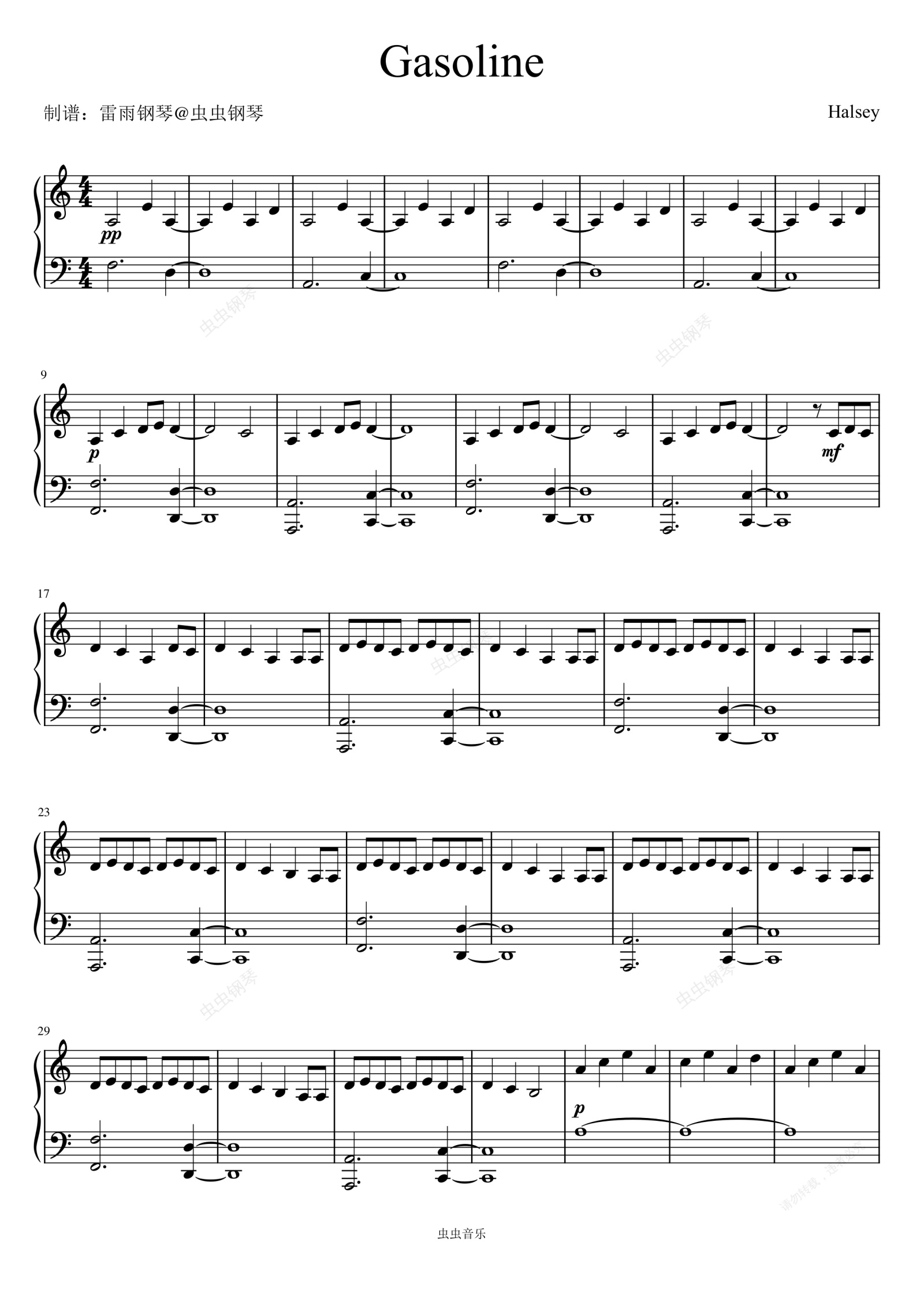 钢琴谱:Gasoline (Explicit) - Halsey