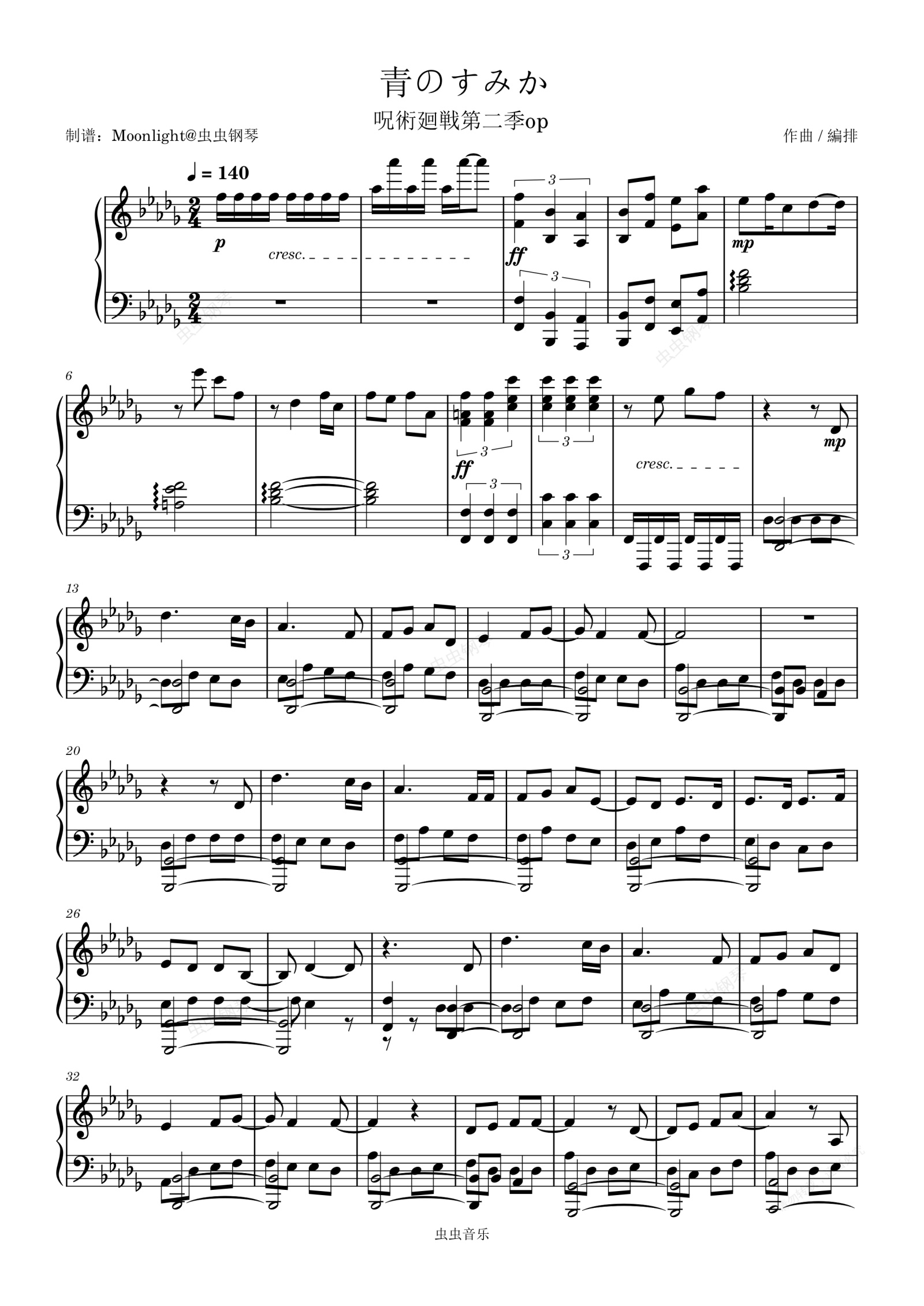 钢琴谱:极限还原-咒术回战 第二季 op 原调