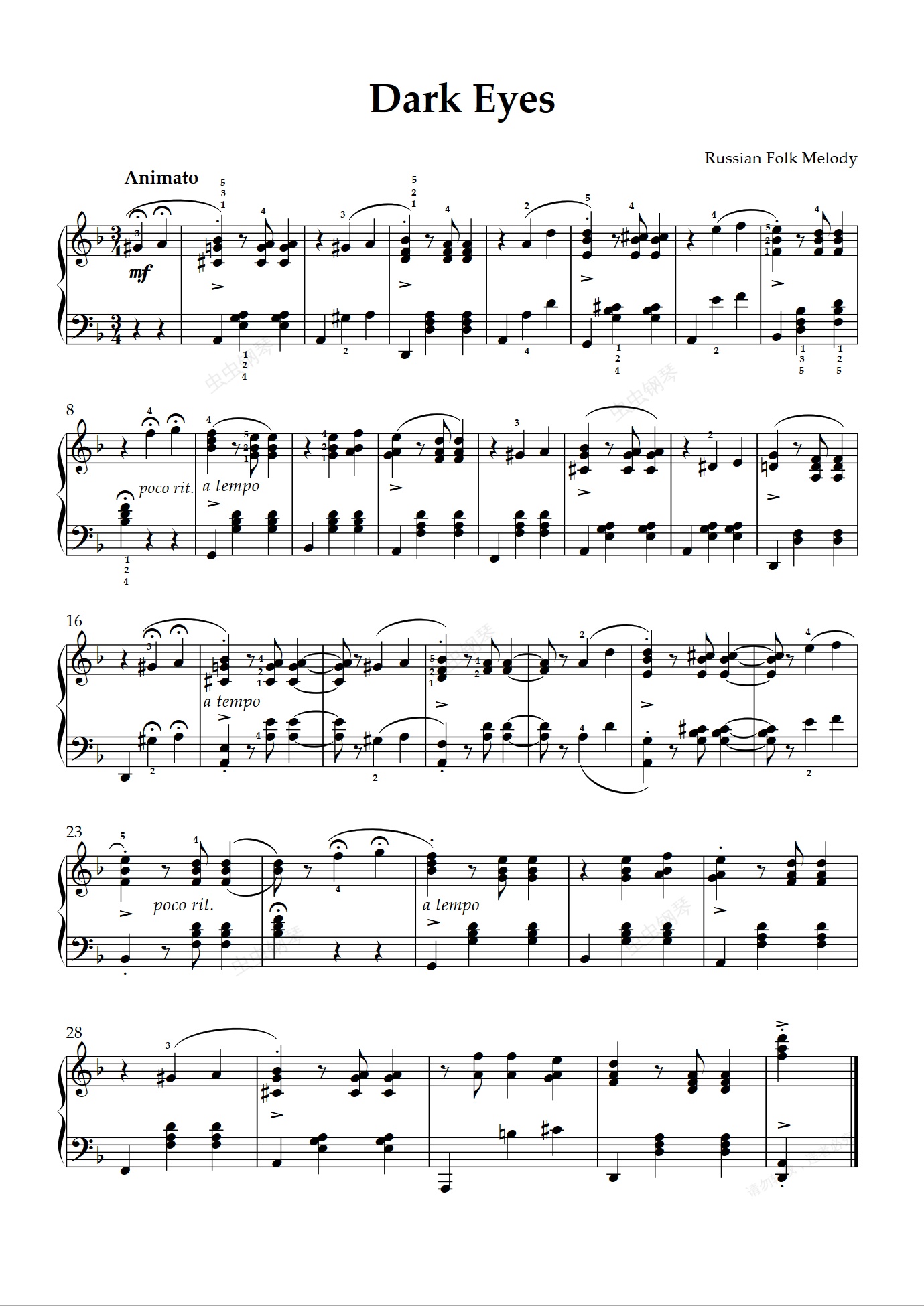 钢琴谱:Dark Eyes 俄罗斯民歌