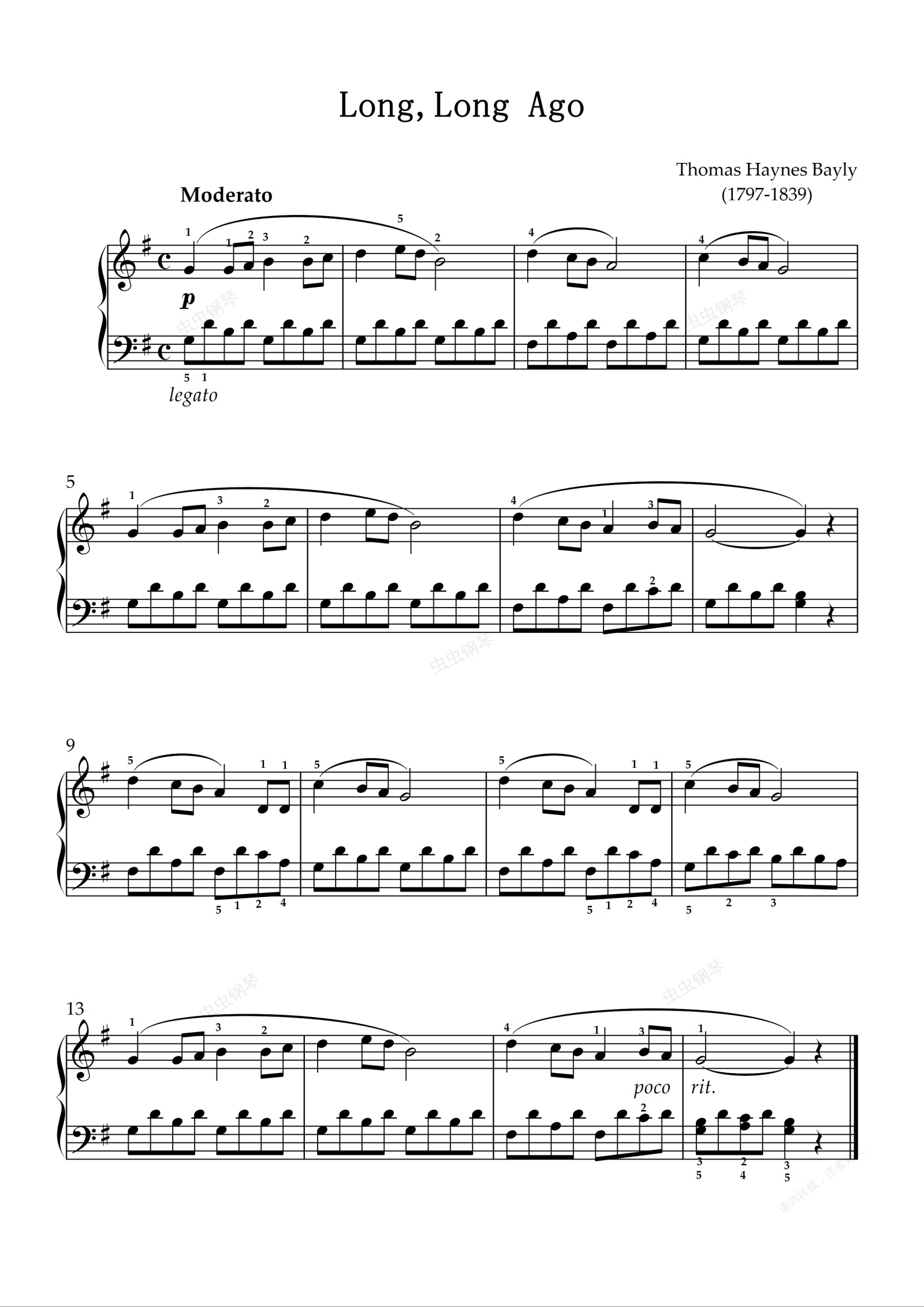 钢琴谱:Long,Long Ago 托马斯·黑恩·贝理 很久以前