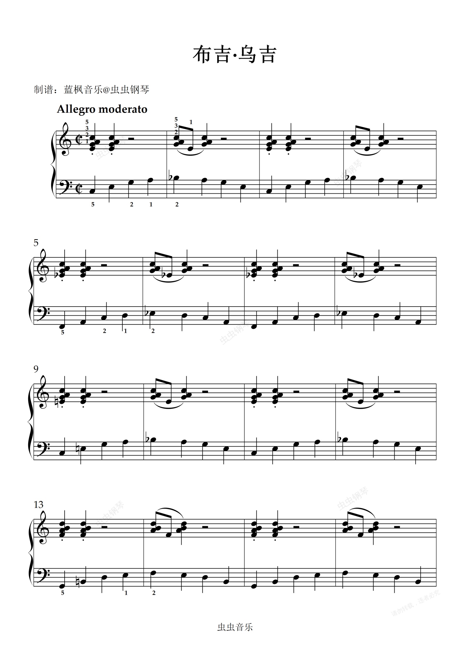 下面这首曲子含有爵士音乐所特有的音型,常常被用在“布吉·乌吉”[ 低音连奏的爵士乐钢琴奏一译者注]中。这种曲子不能说它具有什么音乐性,但不知为什么,似乎许多人都喜欢它。在你个人的保留演奏曲目中包括几首这样的曲例还是蛮不错的,当你参加朋友的聚会,被邀请表演一段时,你就不会生怕你演奏的绝大部分曲子被人看作太“老古董”了而坐在角落里不敢上场。学习这段曲子时,应当仔细练习,就把它当作一首更像普通风格的作品,它至少可以让你在右手弹奏密集与分解和弦时,左手弹奏经过句的技巧得到非常好的练习