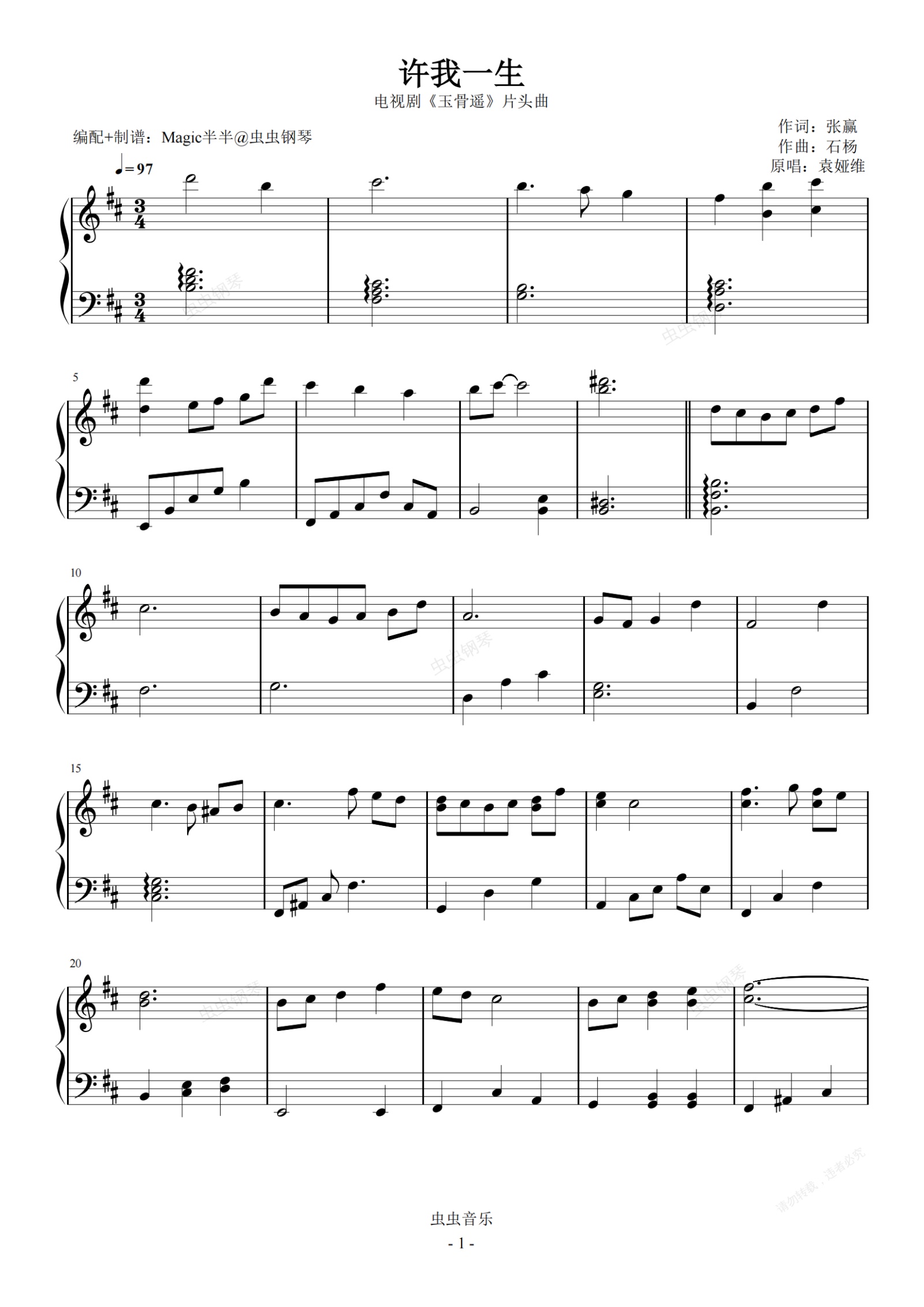 钢琴谱:许我一生 <玉骨遥>电视剧片头曲