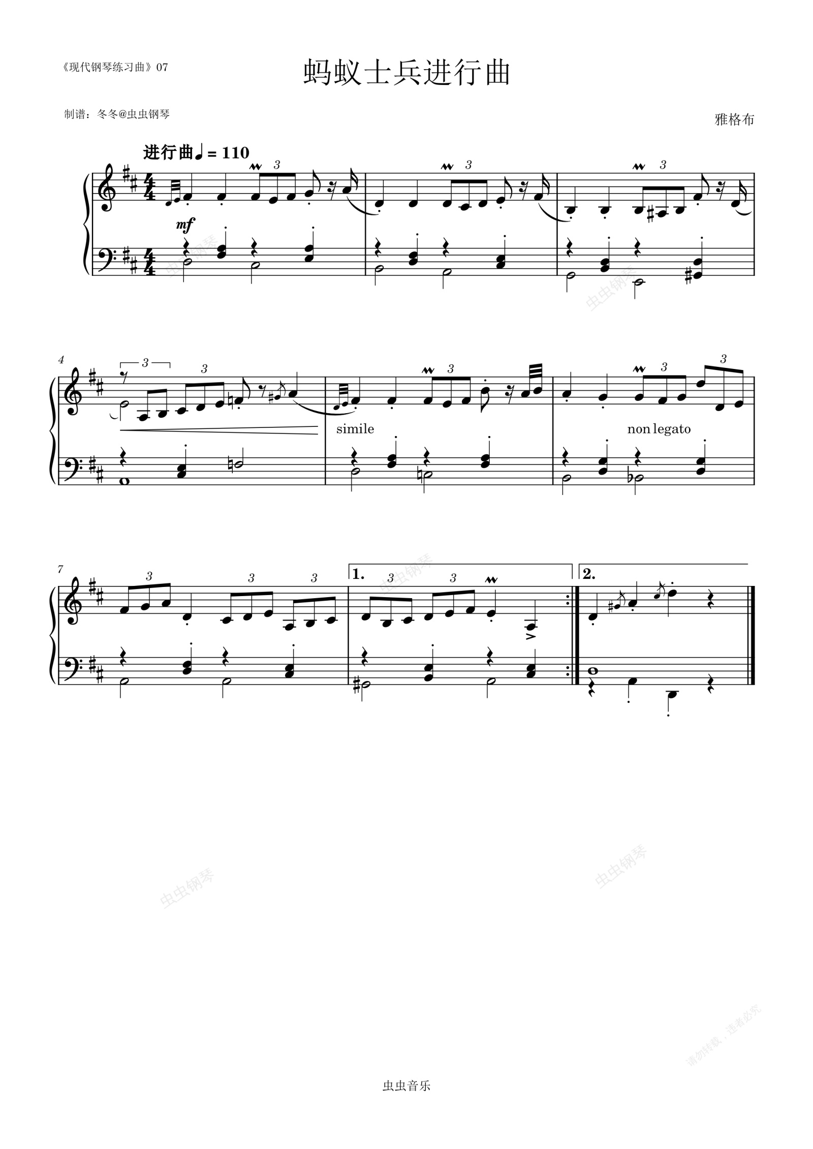 钢琴谱:蚂蚁士兵进行曲