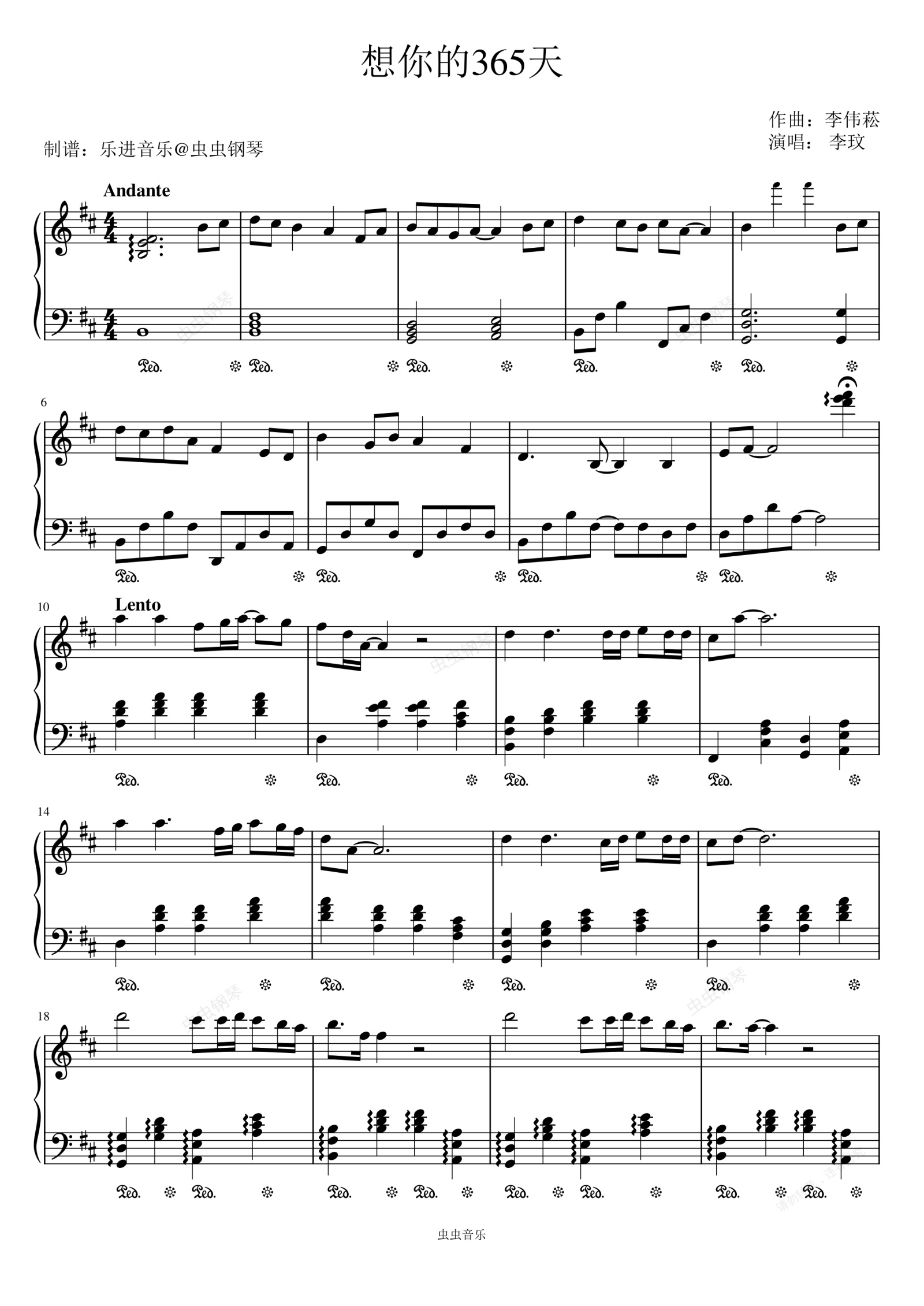 钢琴谱:《想你的365天》原调回忆版