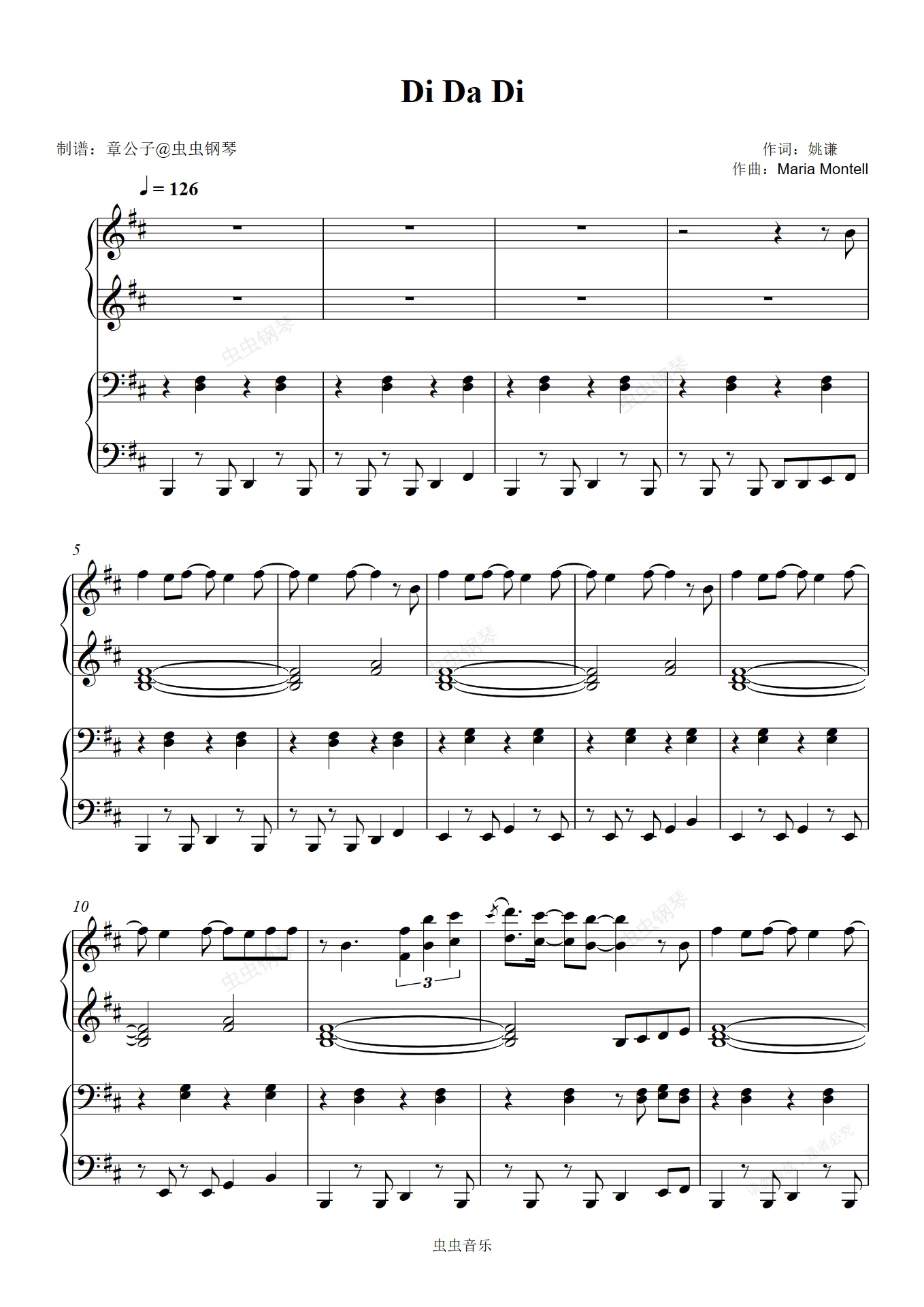 钢琴谱:Di Da Di 四手联弹 精简版 李玟