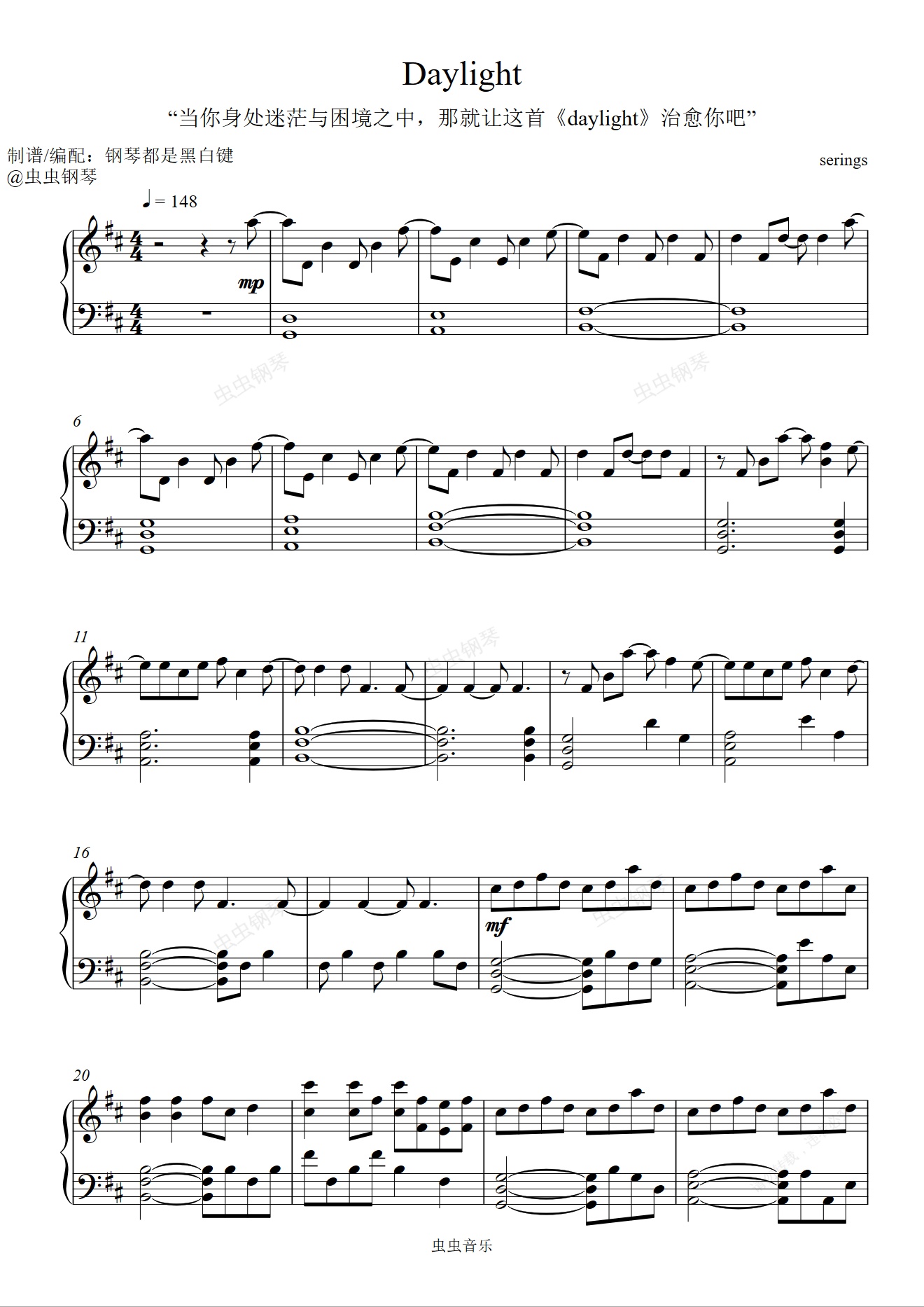 钢琴谱:Daylight - serings 下一秒沦陷【超高还原中等难度附伴奏】