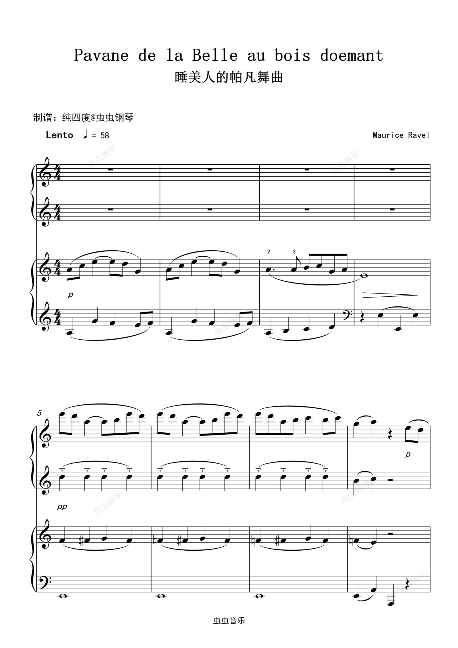 钢琴谱:《鹅妈妈组曲》睡美人的帕凡舞曲(四手联弹)