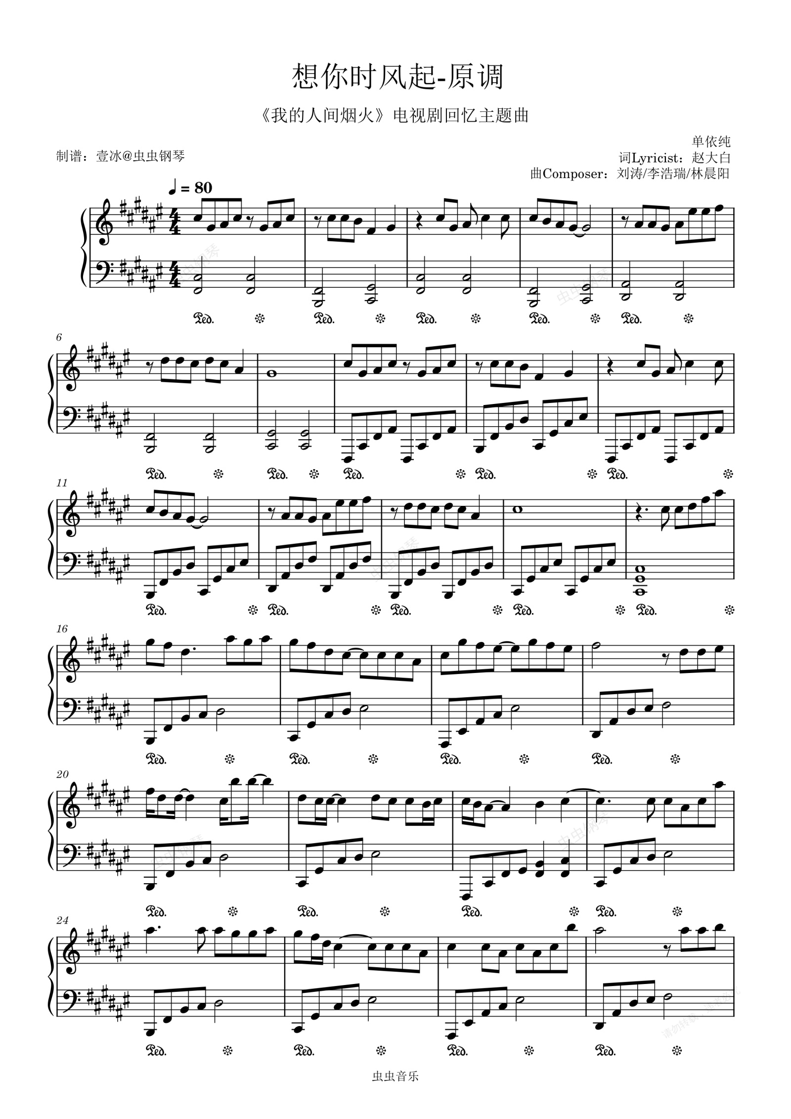 钢琴谱:想你时风起 (《我的人间烟火》电视剧回忆主题曲) - 原调