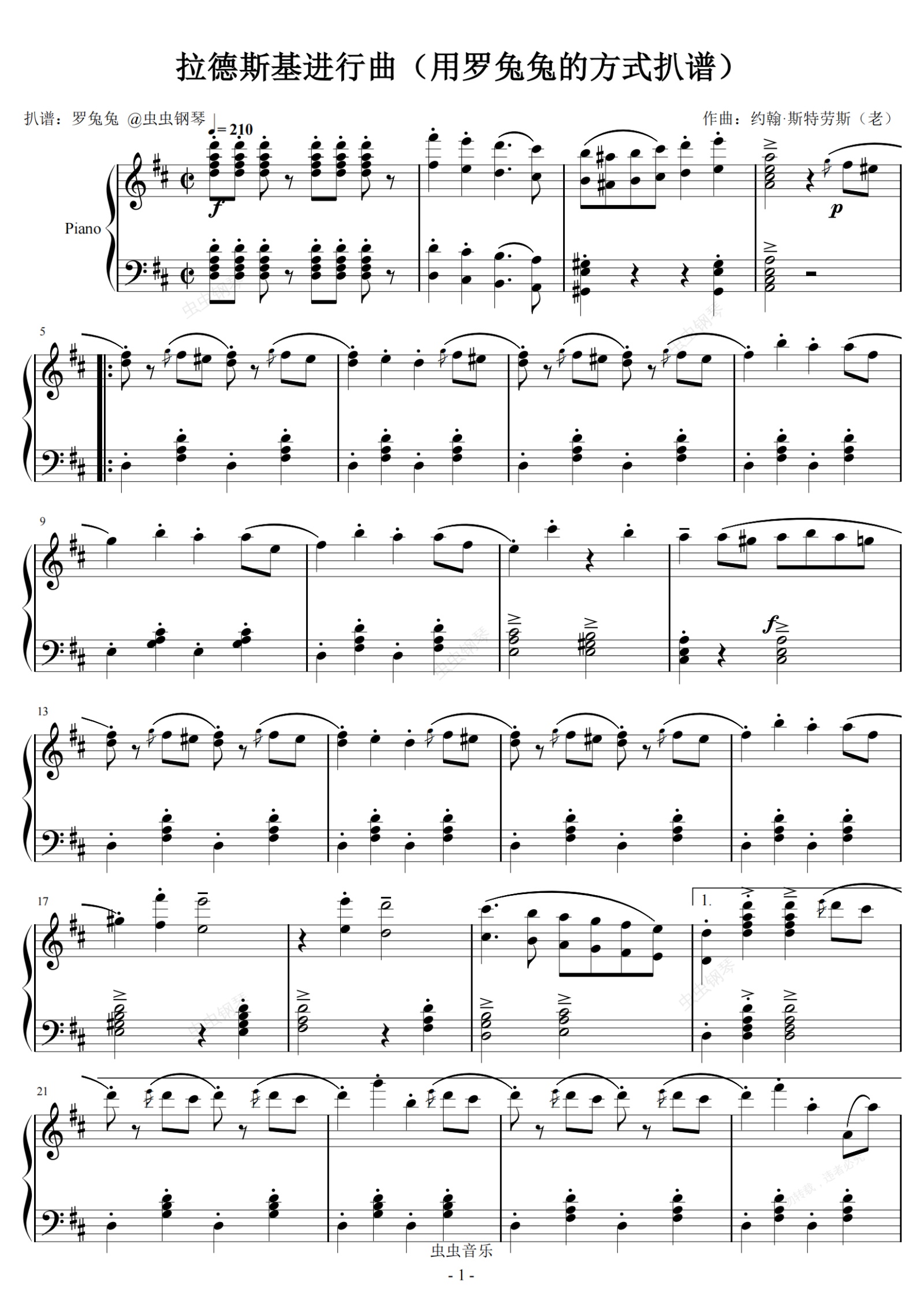 钢琴谱:拉德斯基进行曲(用罗兔兔的方式扒谱)