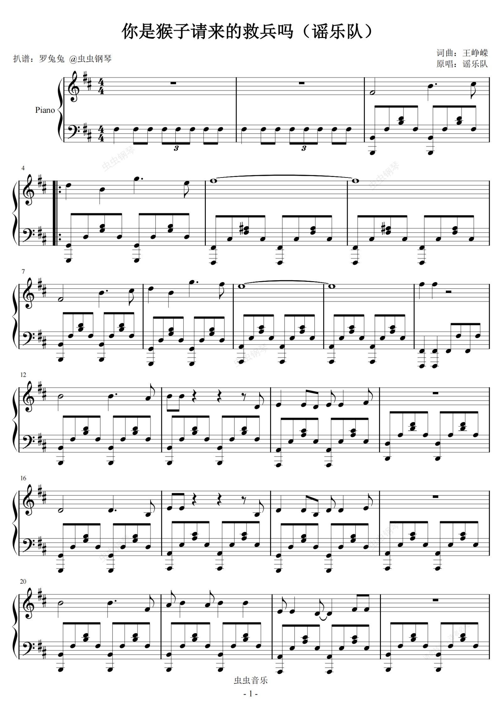 钢琴谱:你是猴子请来的救兵吗(谣乐队)