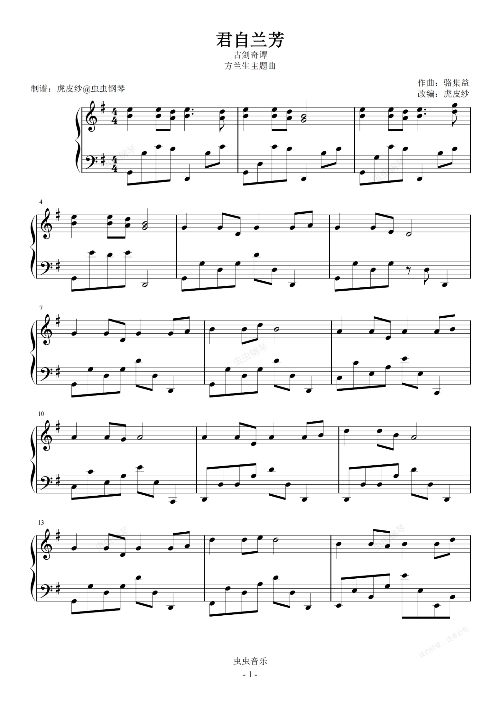 钢琴谱:古剑奇谭 君自兰芳 方兰生主题曲
