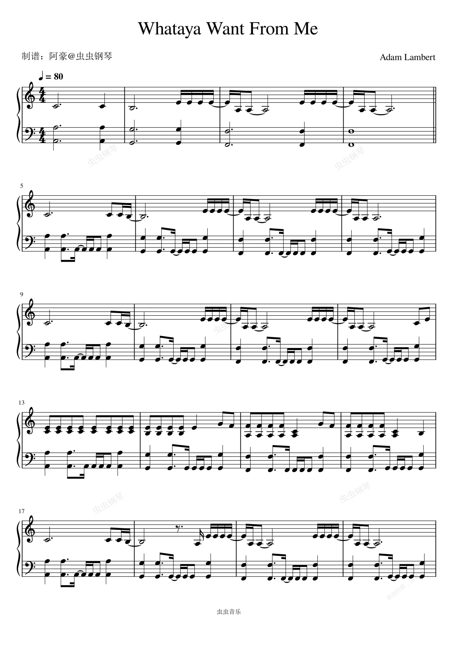 钢琴谱:Whataya Want from Me - Adam Lambert