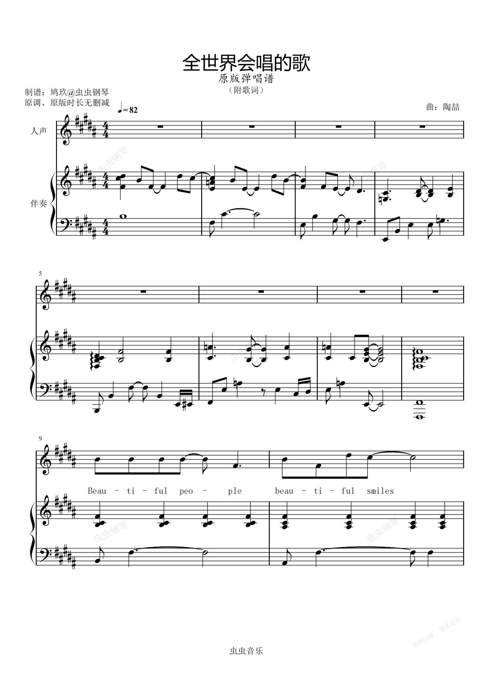 钢琴谱:《全世界会唱的歌》原版弹唱谱、伴奏谱