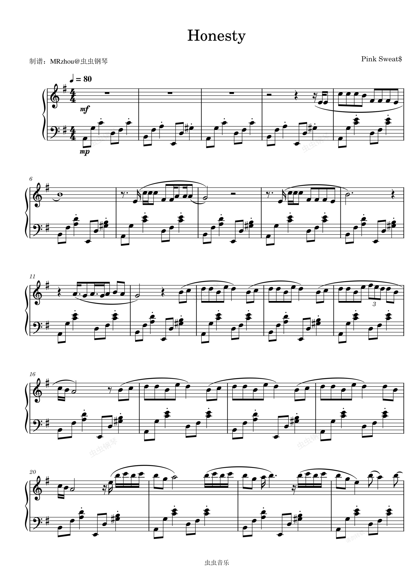 钢琴谱:Honesty (Explicit) - Pink Sweat$