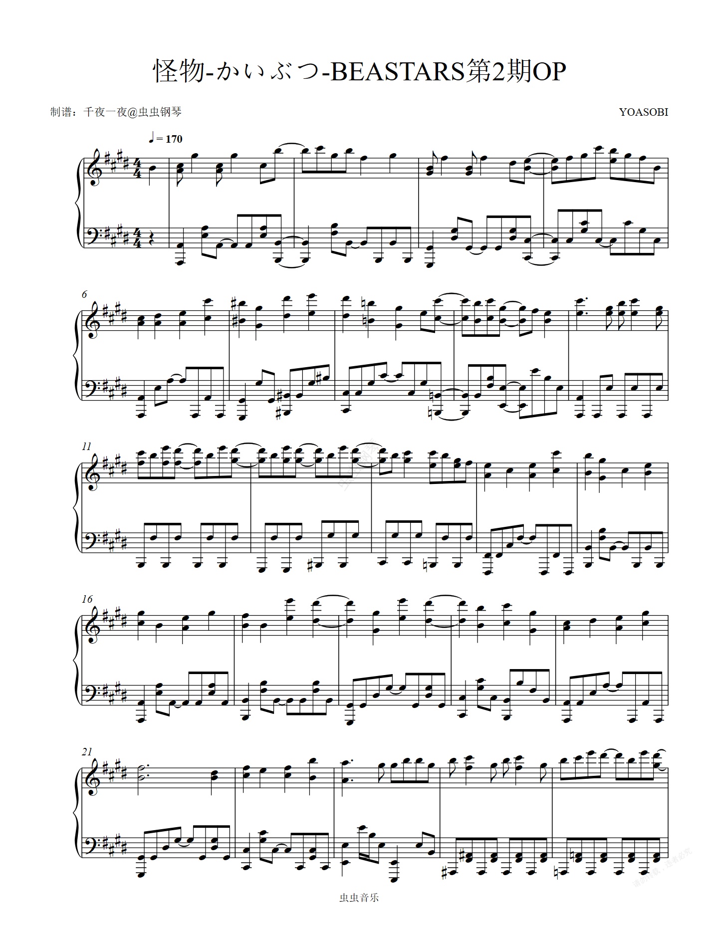 钢琴谱:怪物-かいぶつ-BEASTARS第2期OP