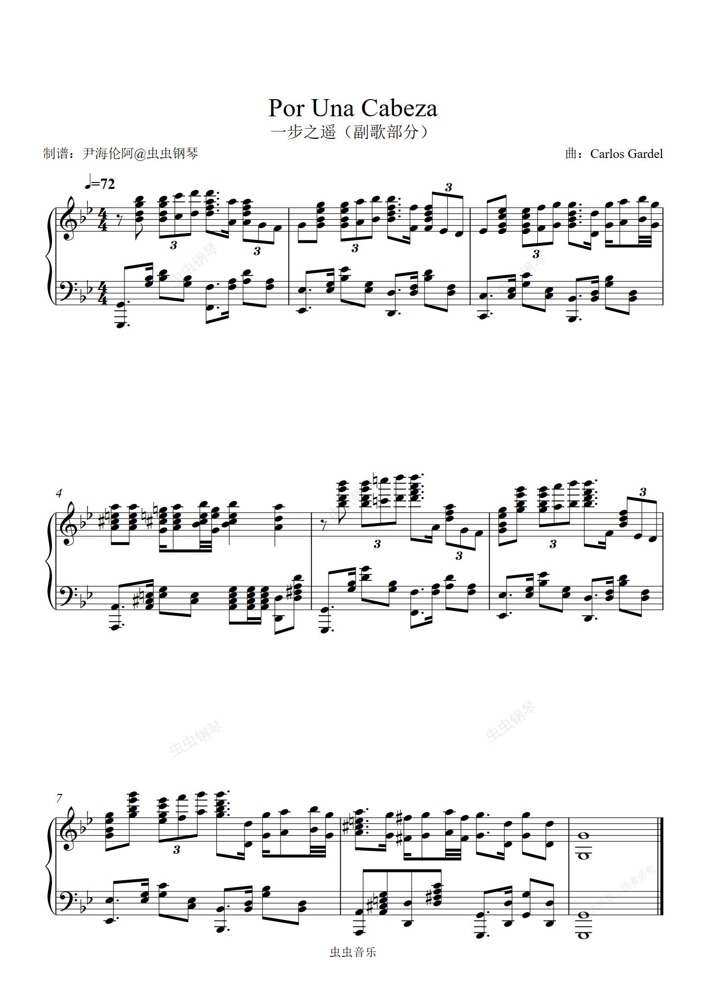 钢琴谱:Por Una Cabeza (一步之遥 副歌部分)