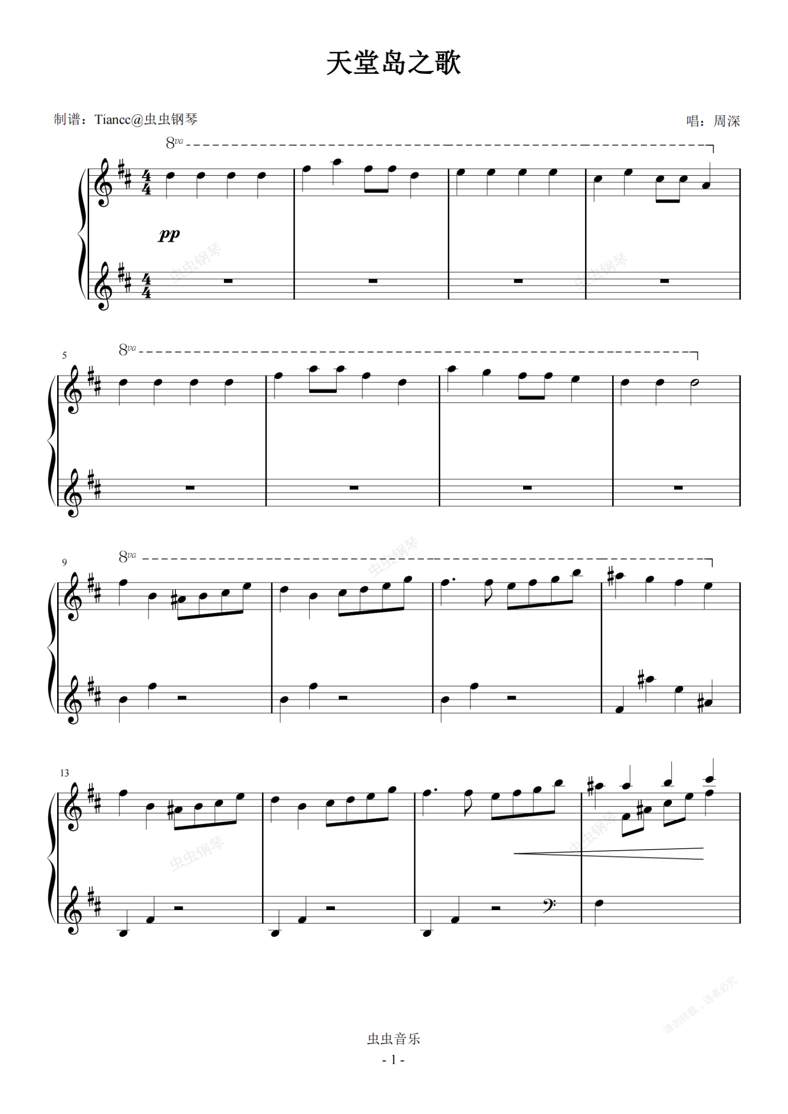 钢琴谱:《天堂岛之歌》周深,亲测能弹,这回不坑了~