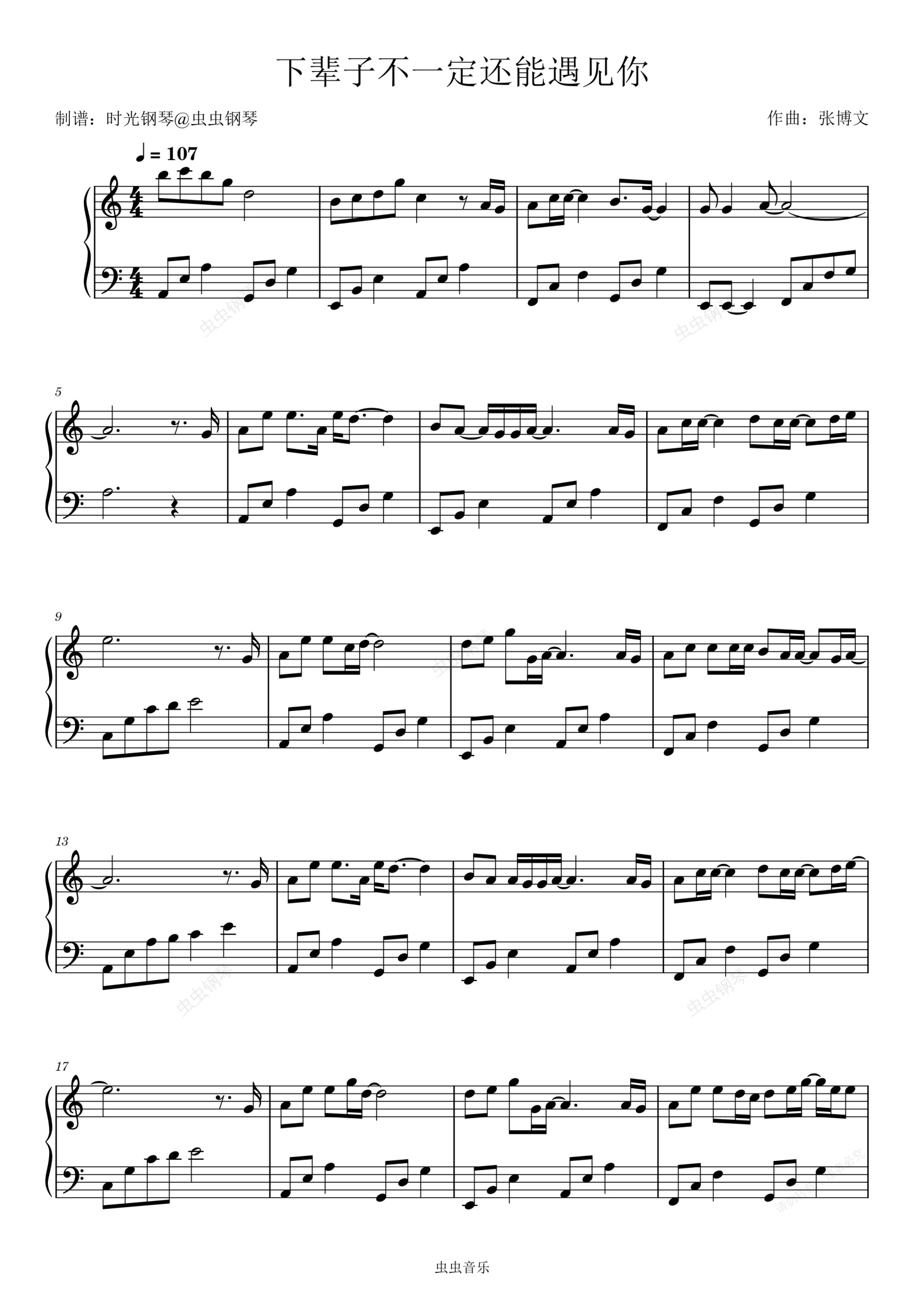 钢琴谱:下辈子不一定还能遇见你 陈雅森 简单好听