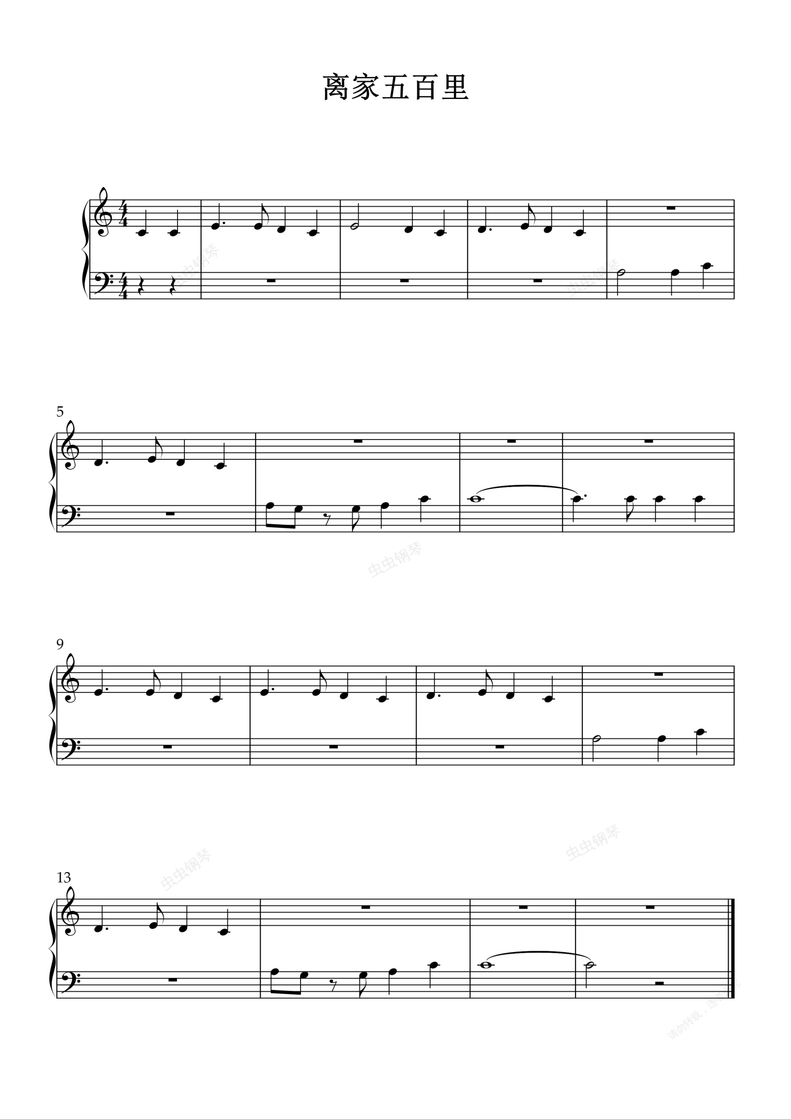 您的位置: 首页 > 钢琴谱库 > 离家五百里钢琴谱-佚名