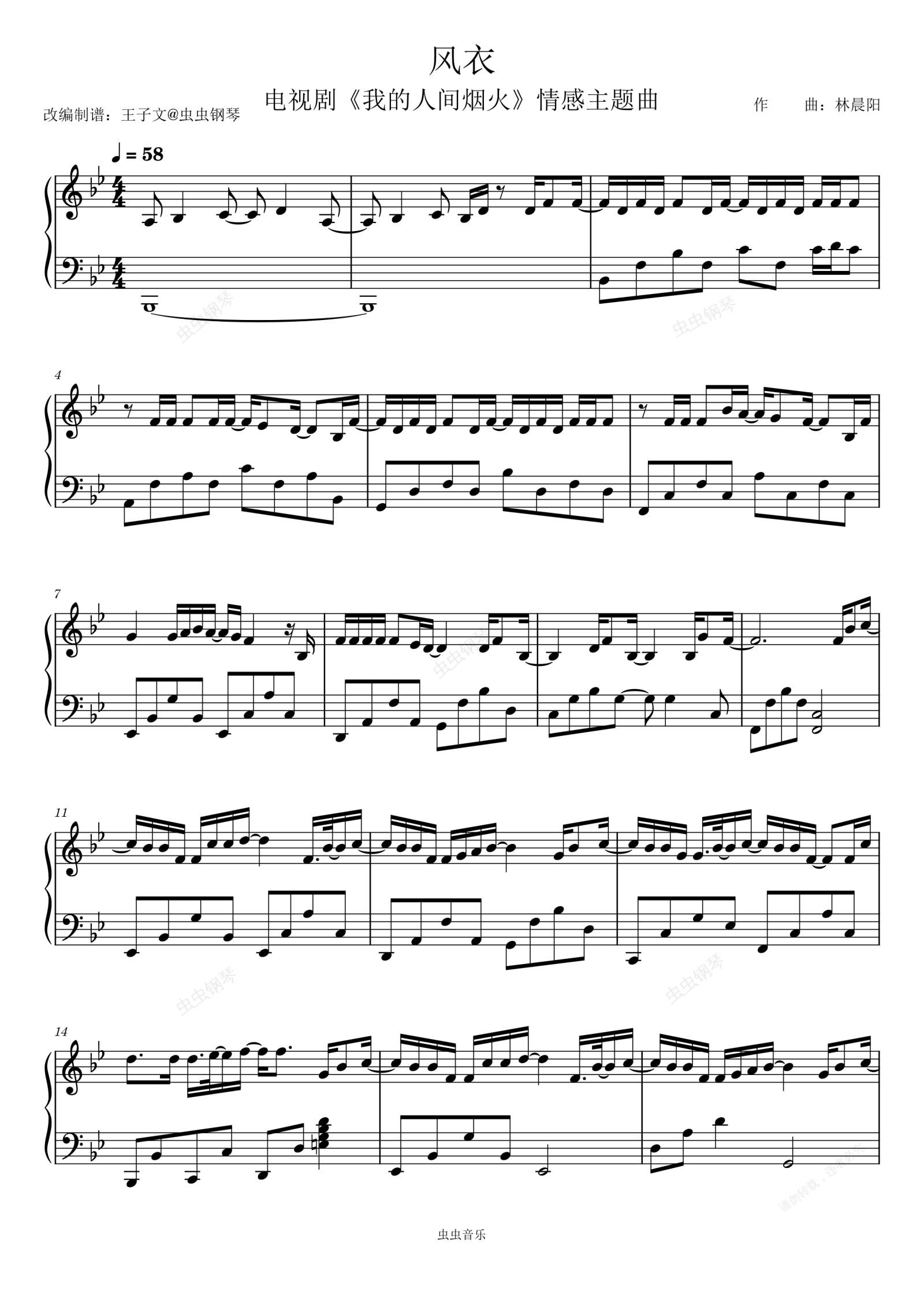 钢琴谱:《风衣》-《我的人间烟火》情感主题曲