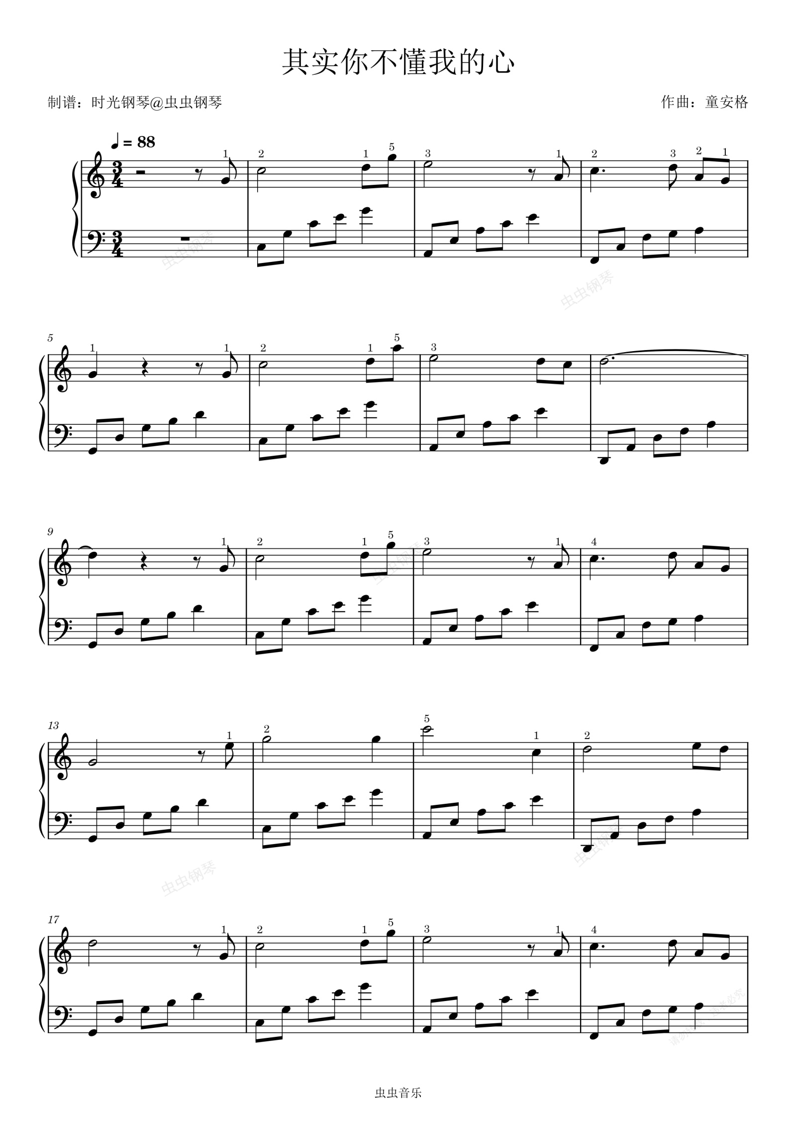 钢琴谱:其实你不懂我的心  裘海正  简单好听