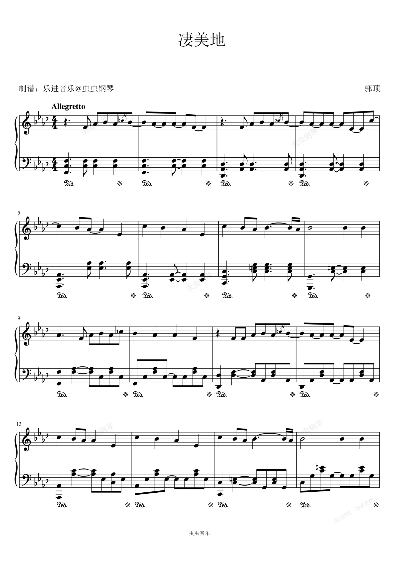 钢琴谱:《凄美地》原调