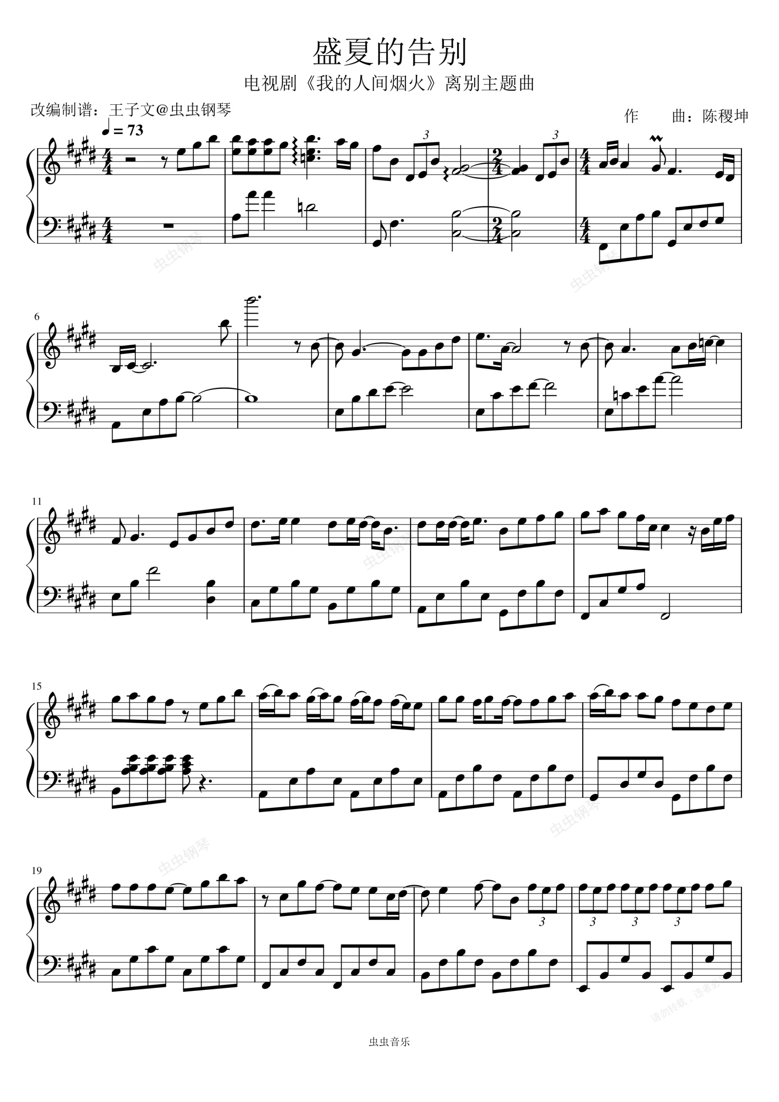 钢琴谱:《盛夏的告别》-《我的人间烟火》离别主题曲
