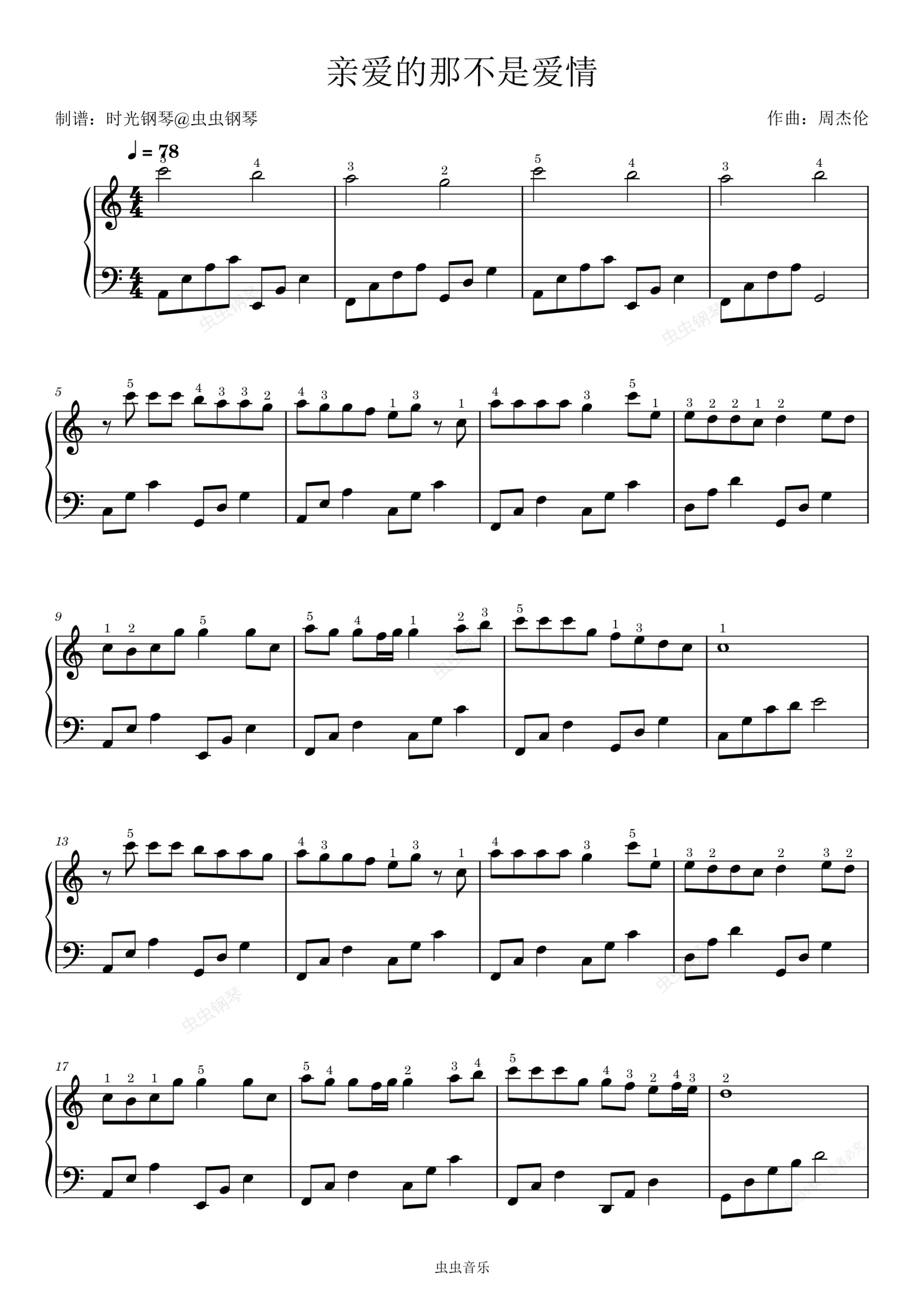 钢琴谱:亲爱的那不是爱情 张韶涵 简单好听