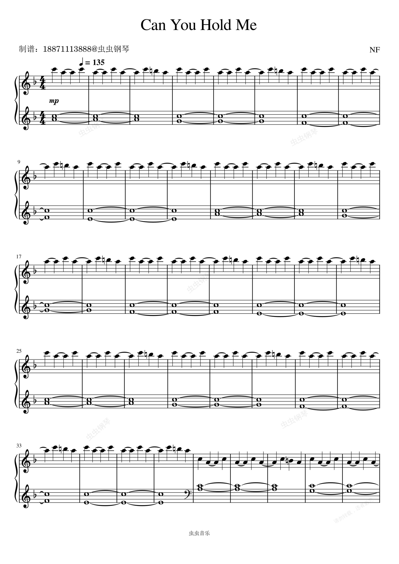 钢琴谱:Can You Hold Me - NF/Britt Nicole