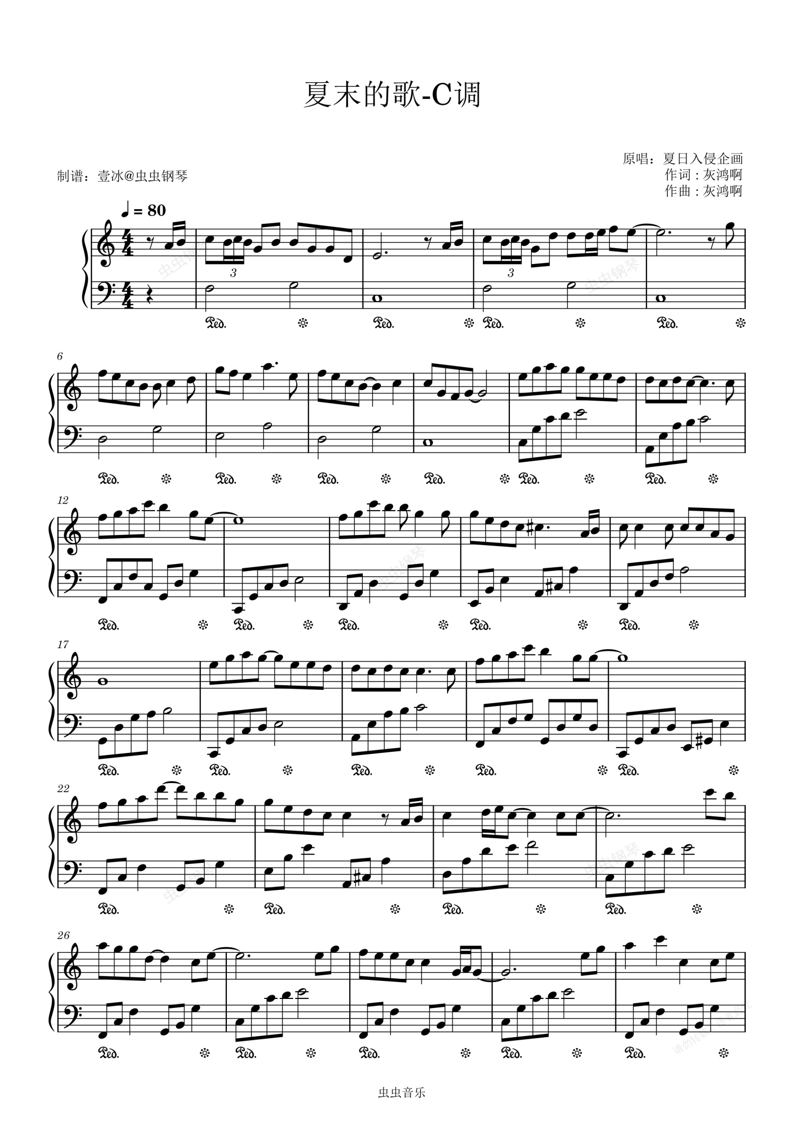 钢琴谱:夏末的歌//夏日入侵企画-C调