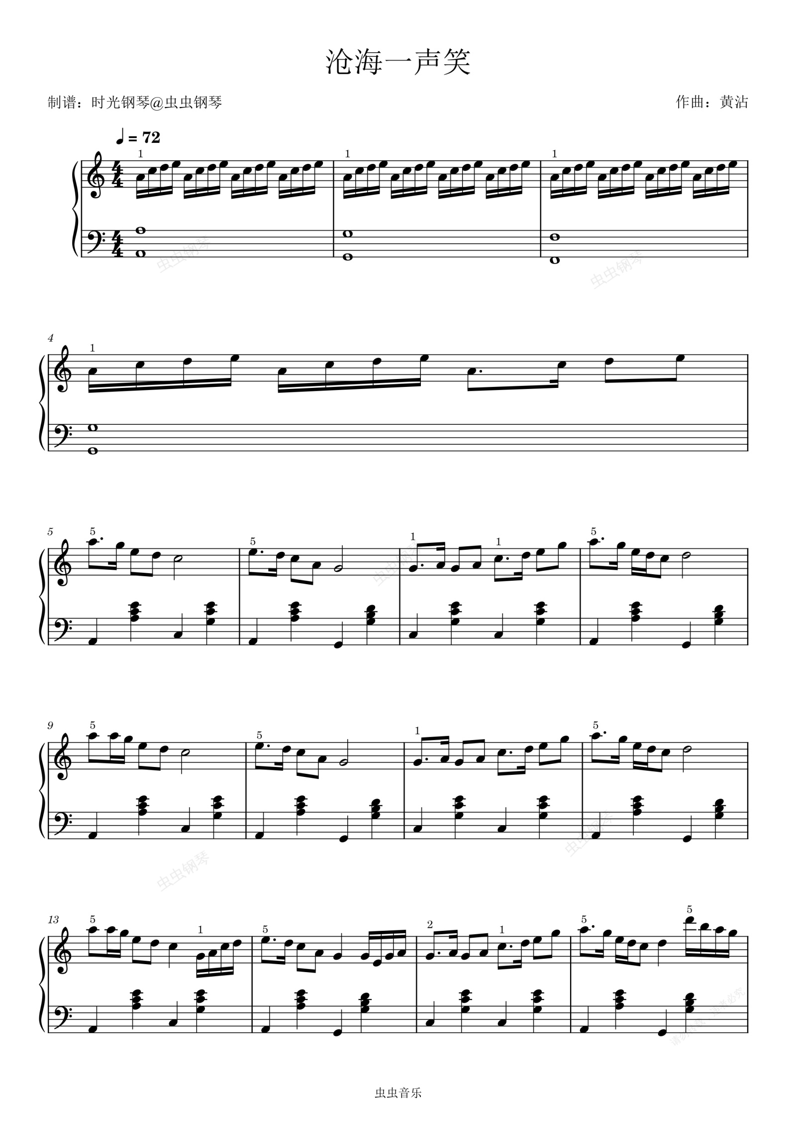 钢琴谱:沧海一声笑 许冠杰 简单好听
