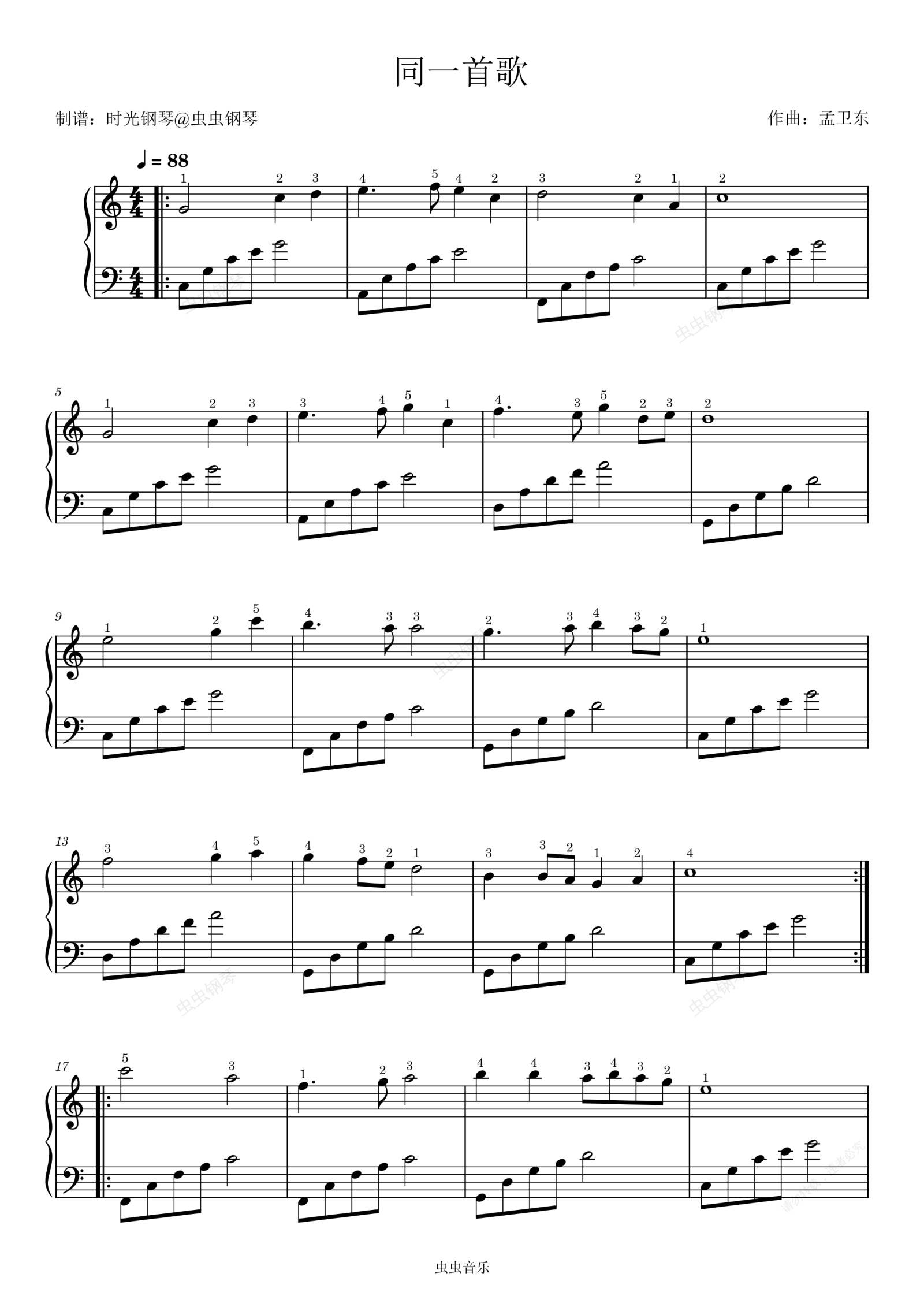 钢琴谱:同一首歌 刘畅 简单好听