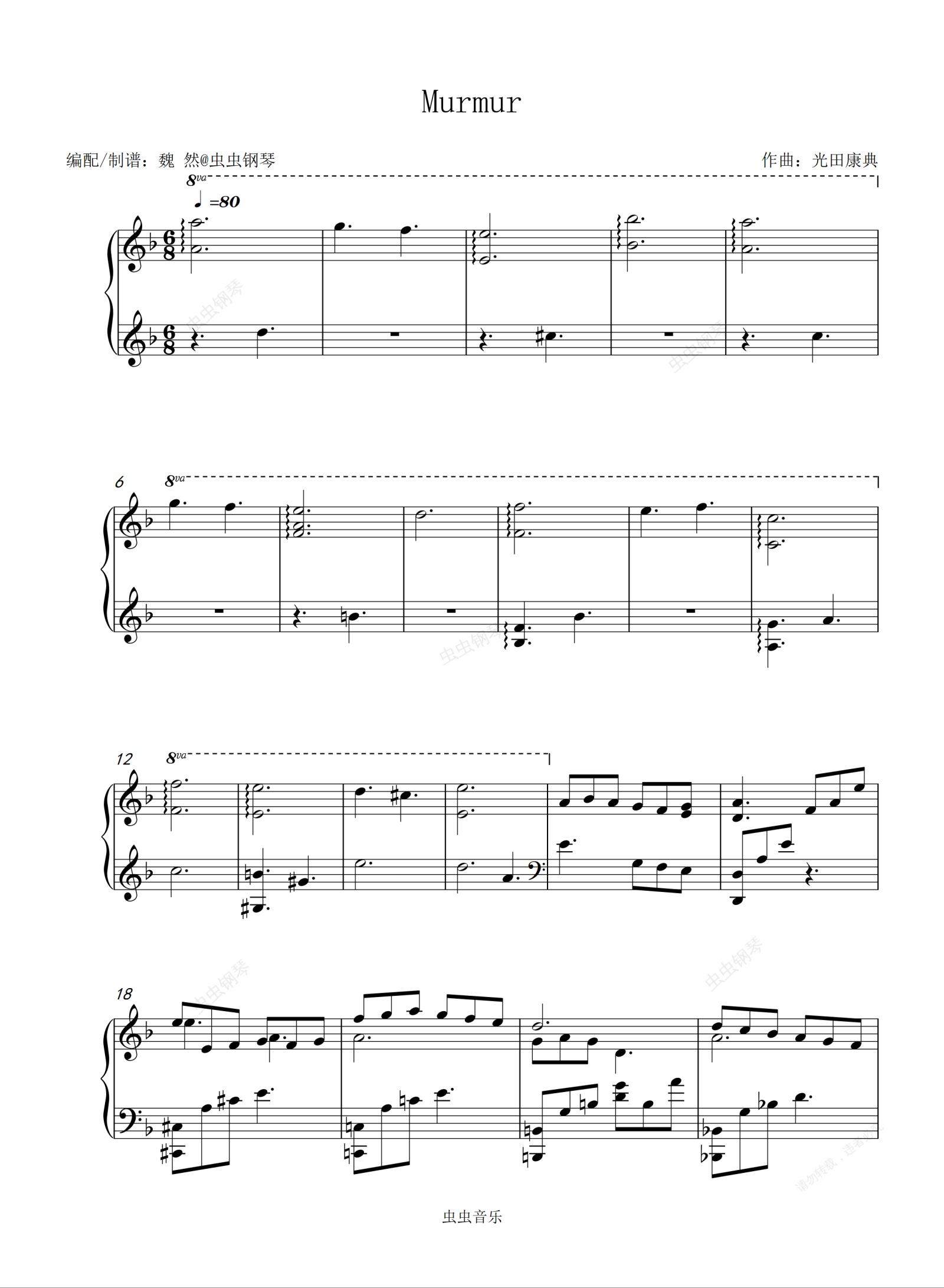 钢琴谱:【黑执事Ⅲ】Murmur(正谱)——『忧伤歌声』