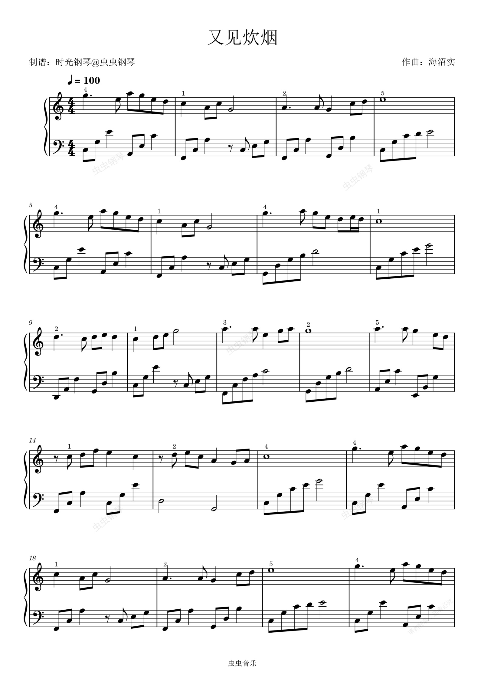 钢琴谱:又见炊烟 邓丽君 简单好听