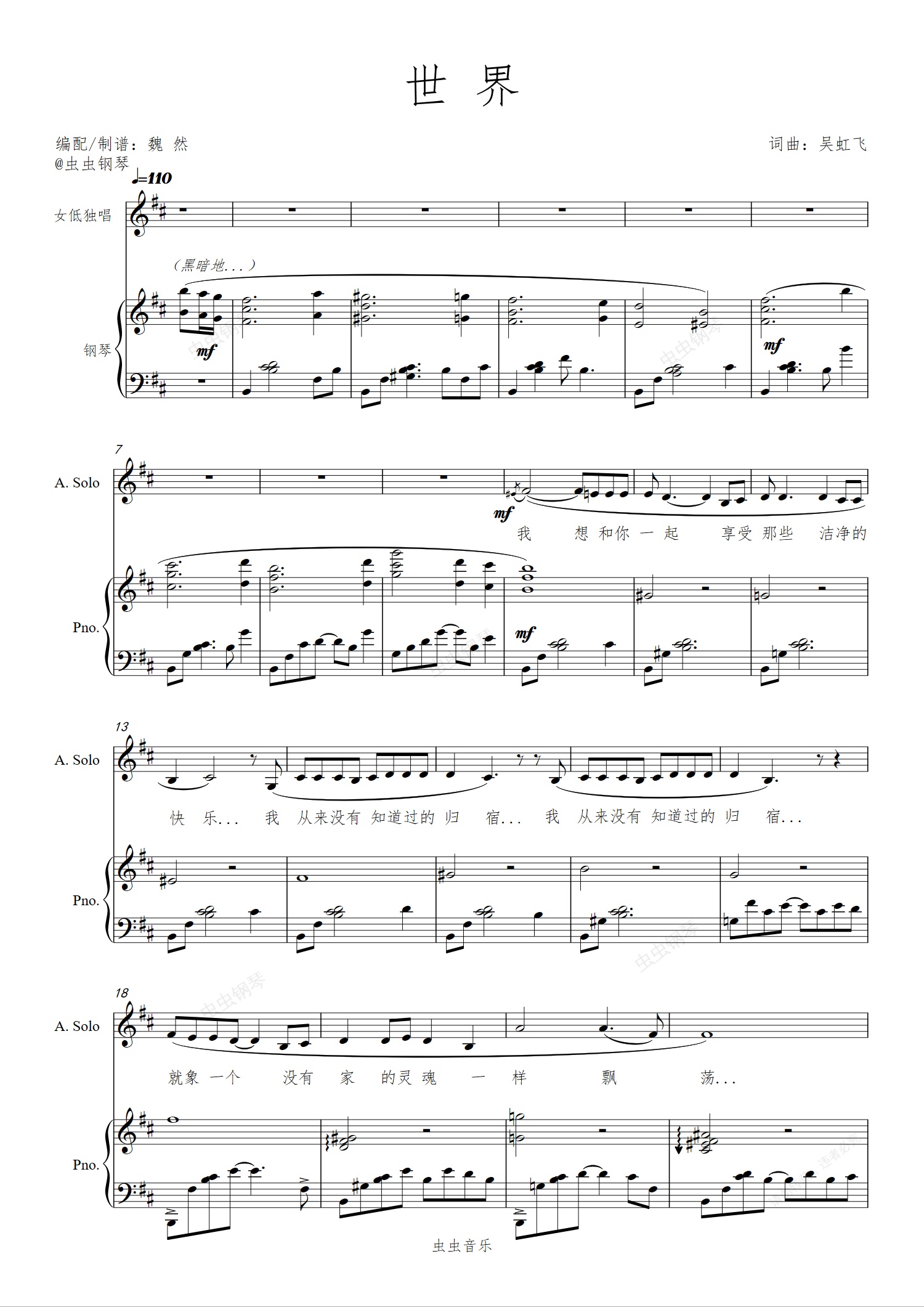 钢琴谱:世界(正谱)——『忧伤歌声』