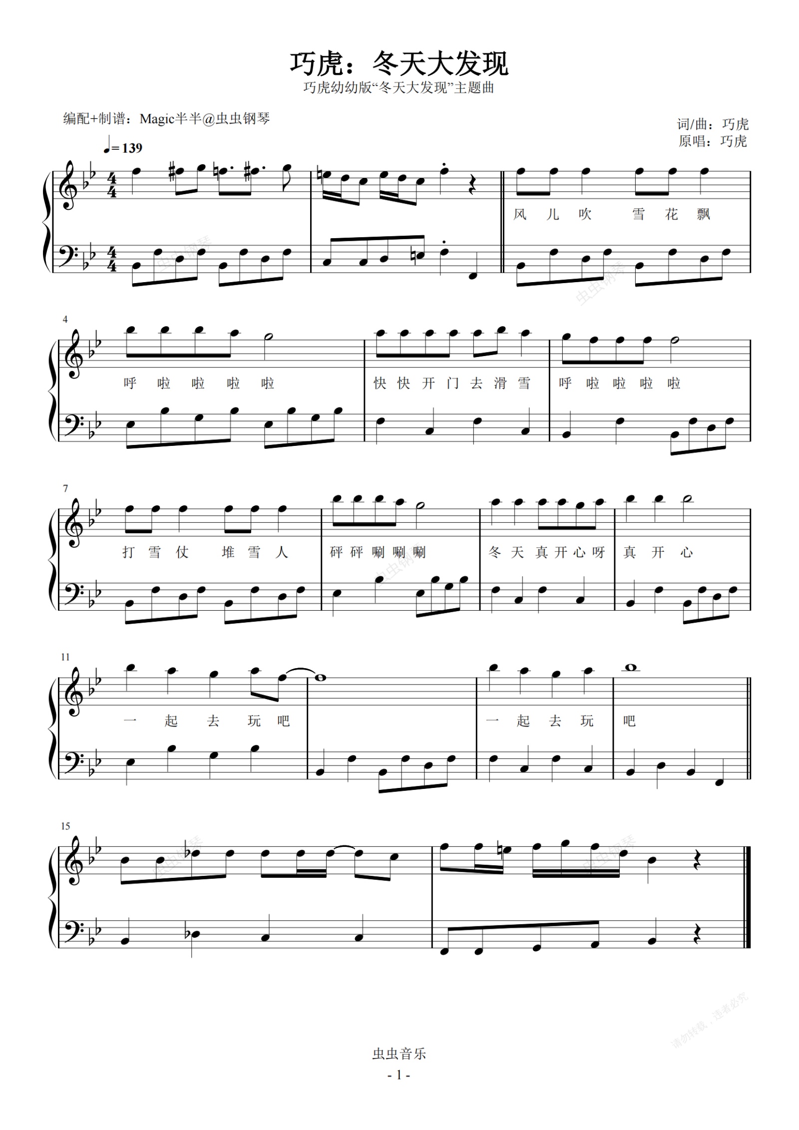 钢琴谱:巧虎幼幼版<冬天大发现>主题曲