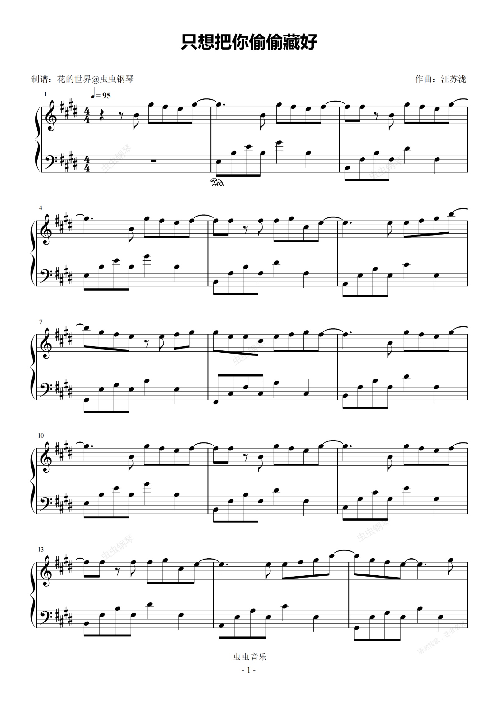 钢琴谱:只想把你偷偷藏好 原调简易版 汪苏泷/赵露思