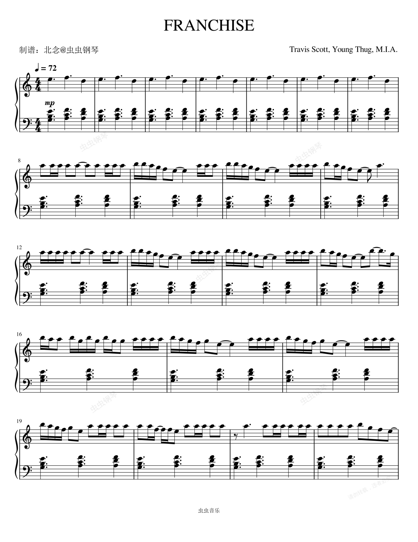 钢琴谱:FRANCHISE (Explicit) - Travis Scott/Young Thug/M.I.A.