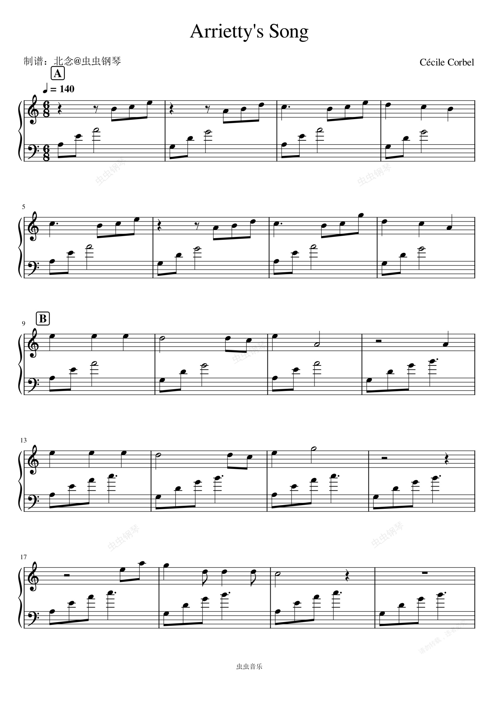 钢琴谱:Arrietty's Song - Cécile Corbel