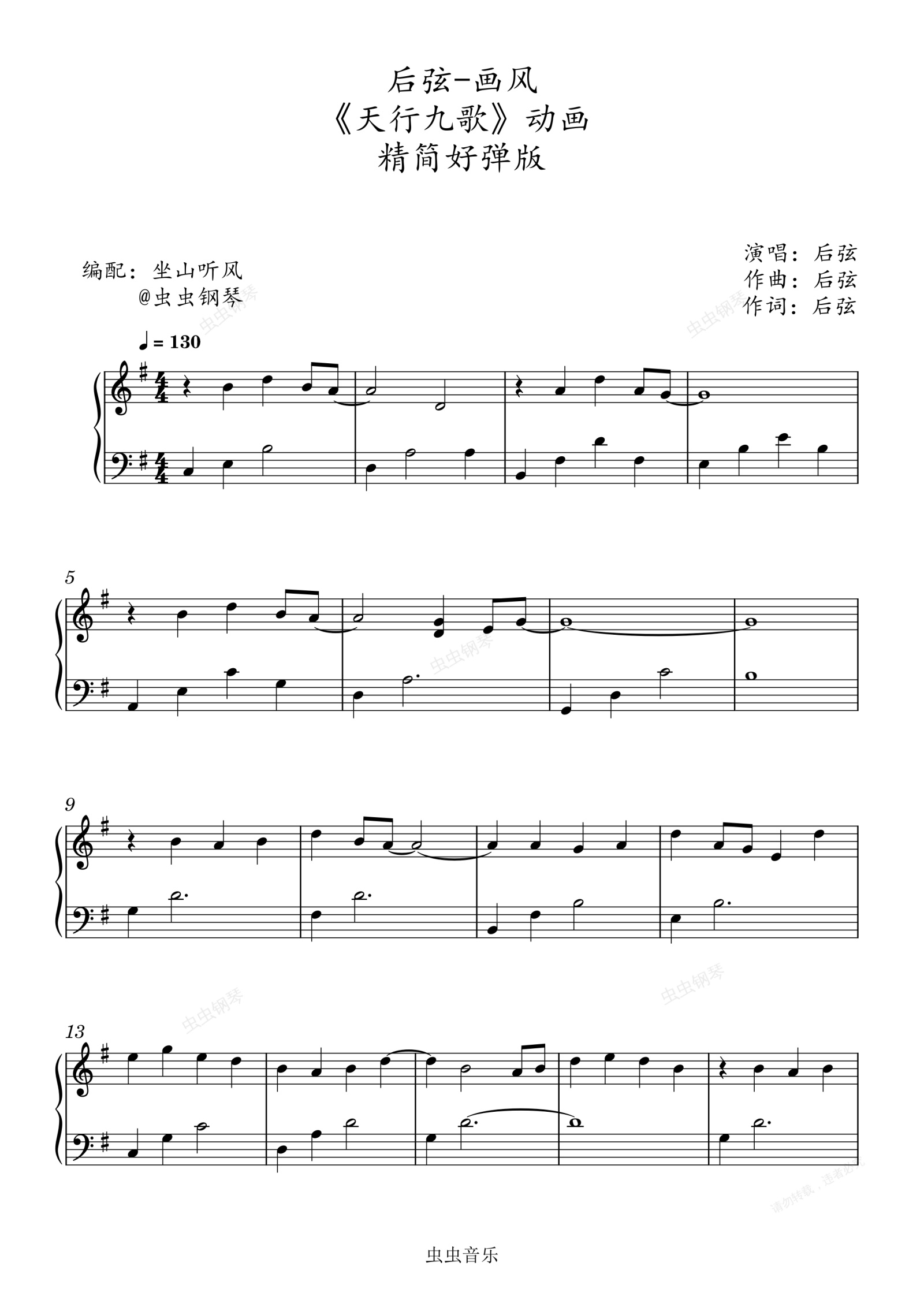 钢琴谱:画风——《天行九歌》 精简好弹版